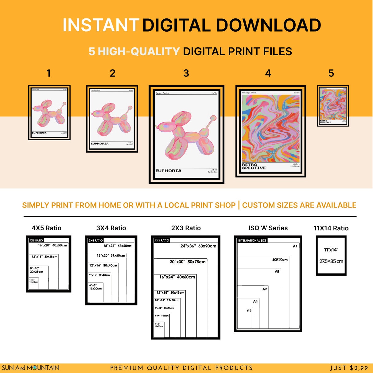 Sun and Mountain offers fun, unique, and inspiring downloadable art prints that can be displayed in your bedroom, living room, office, kitchen, playroom, classroom, nursery, or anywhere that needs a little more life and color. I am dedicated to delivering excellent customer service and prompt support throughout your creative journey.