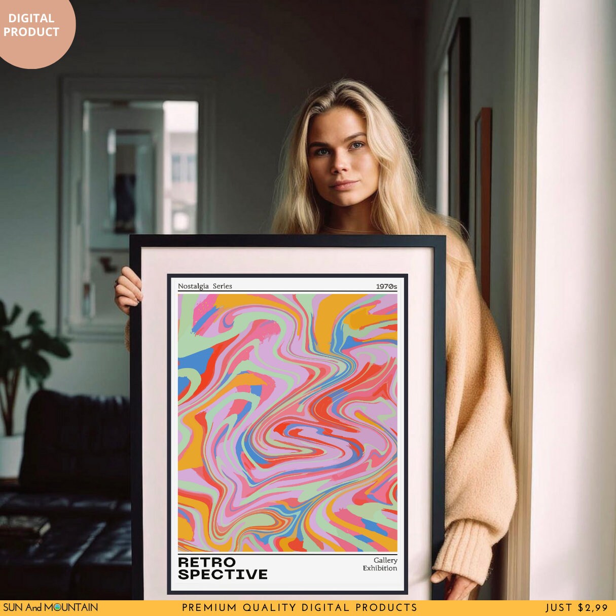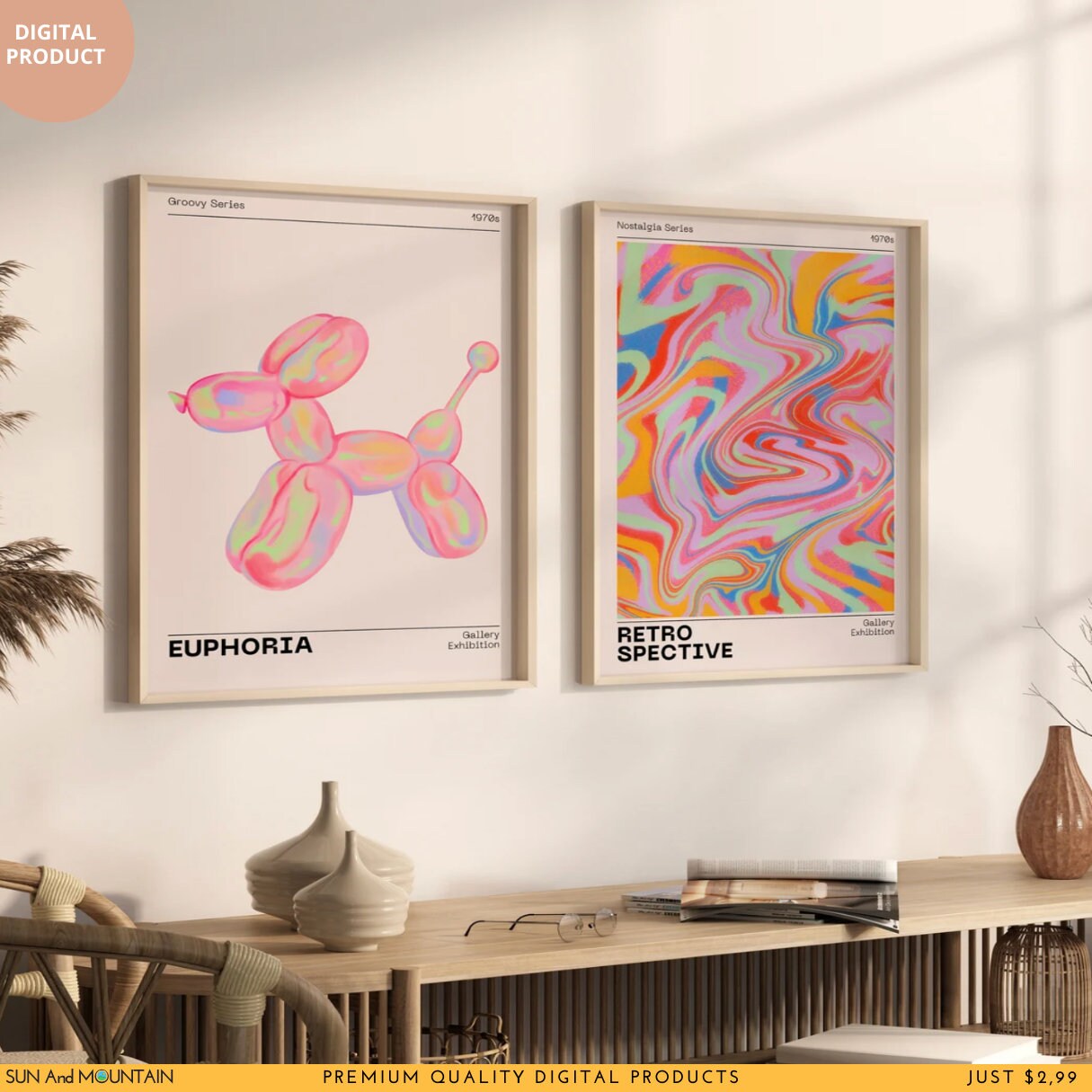 Retro Spective & Euphoria Art Print Set: 70s Psychedelic Wall Decor (Digital Download)