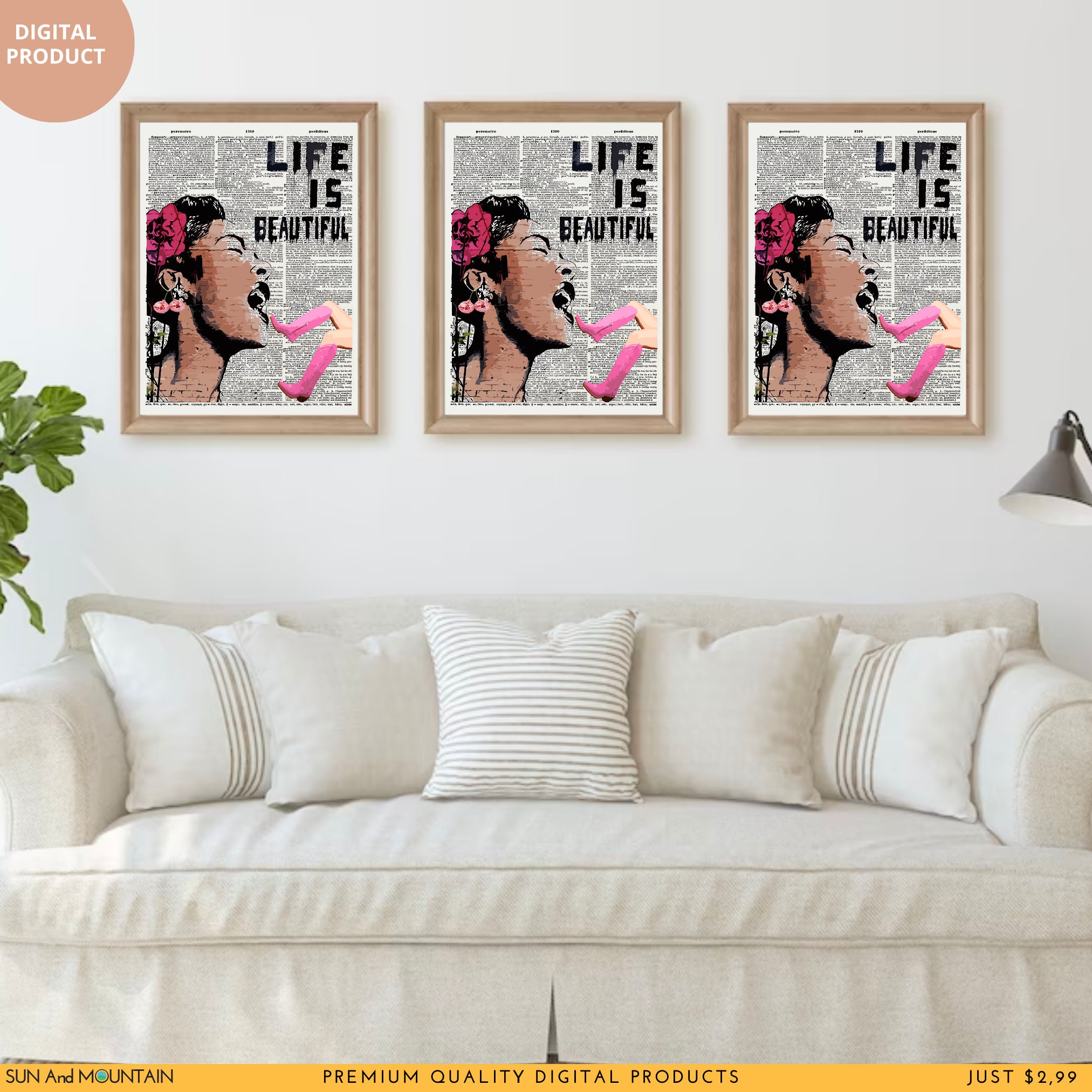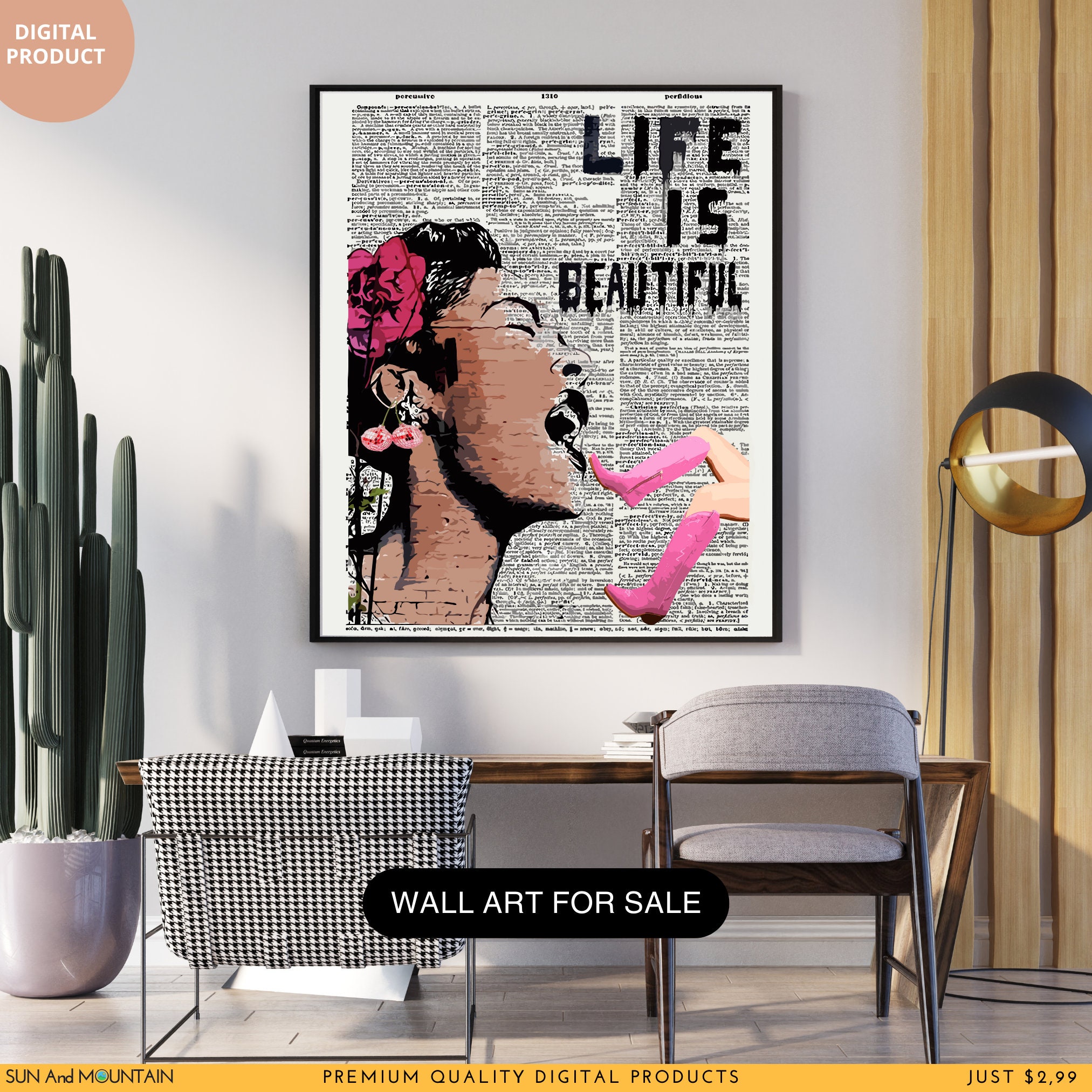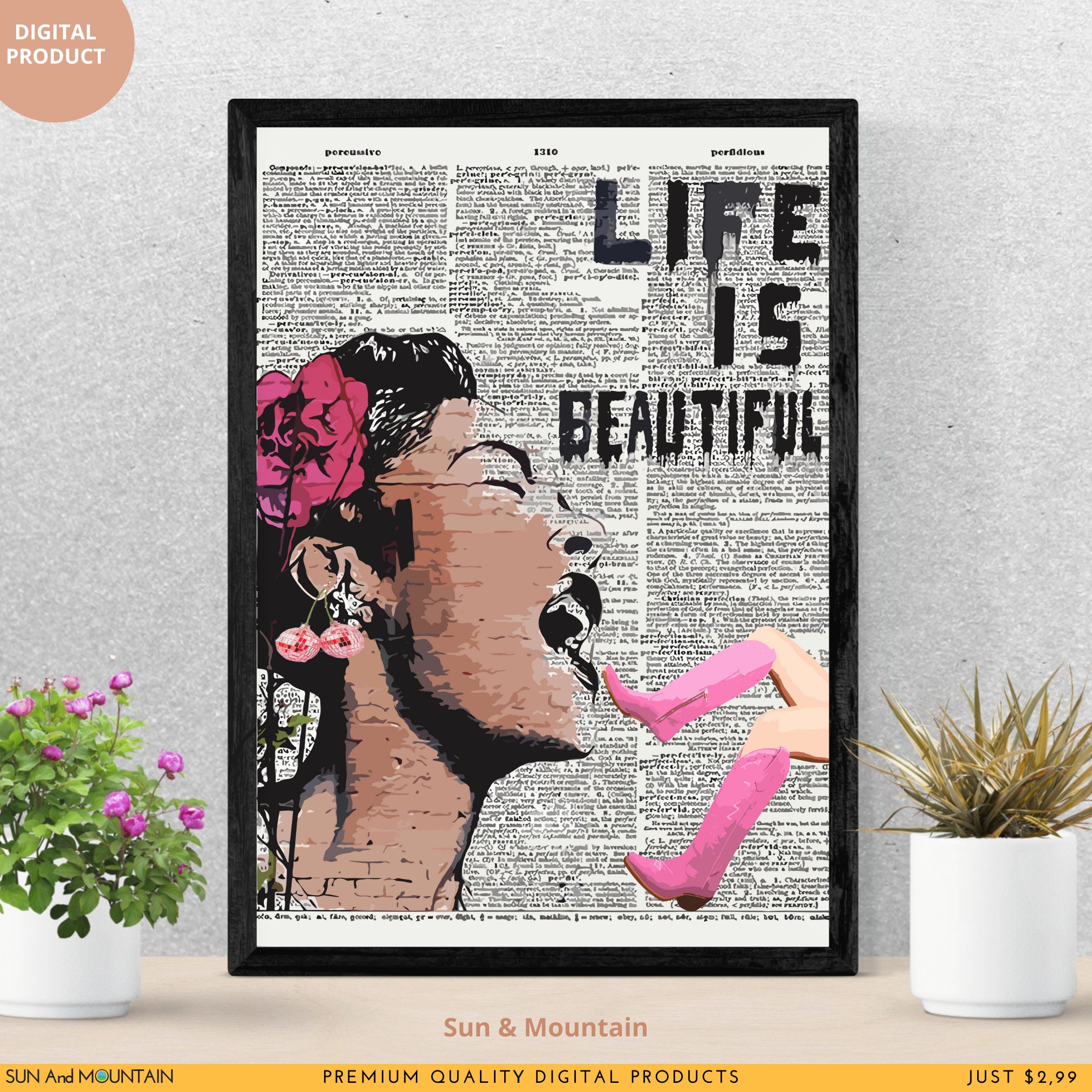 Retro Disco Cowgirl Collage Pink Print, Vintage Art, Western Wall Art, Girly Preppy Trendy Wall Art, Disco Ball Print, Cowgirl Boots Print,life is beautiful Banksy wall art.