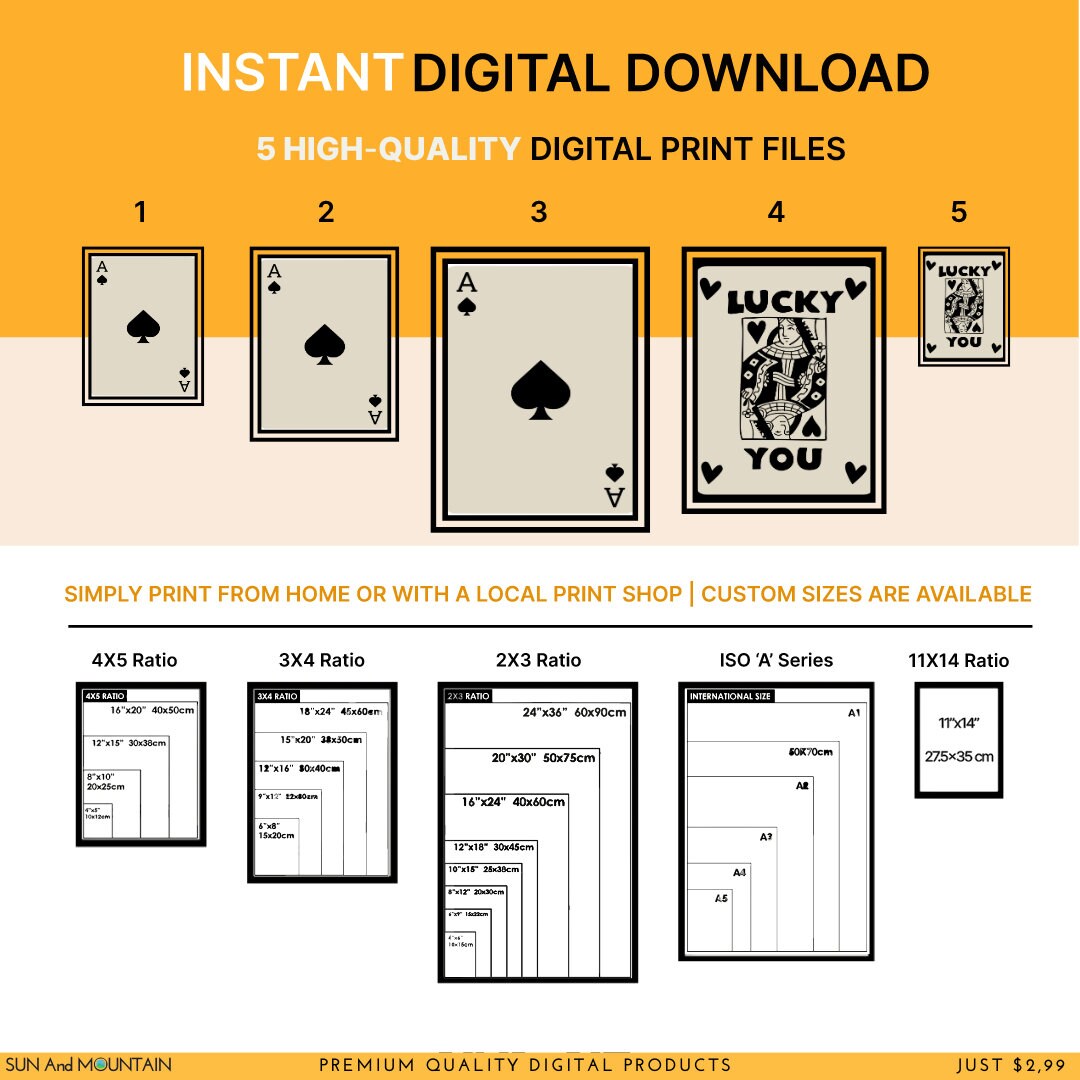 Retro Ace Card Art Prints: Trendy Wall Decor Set (Digital Download)