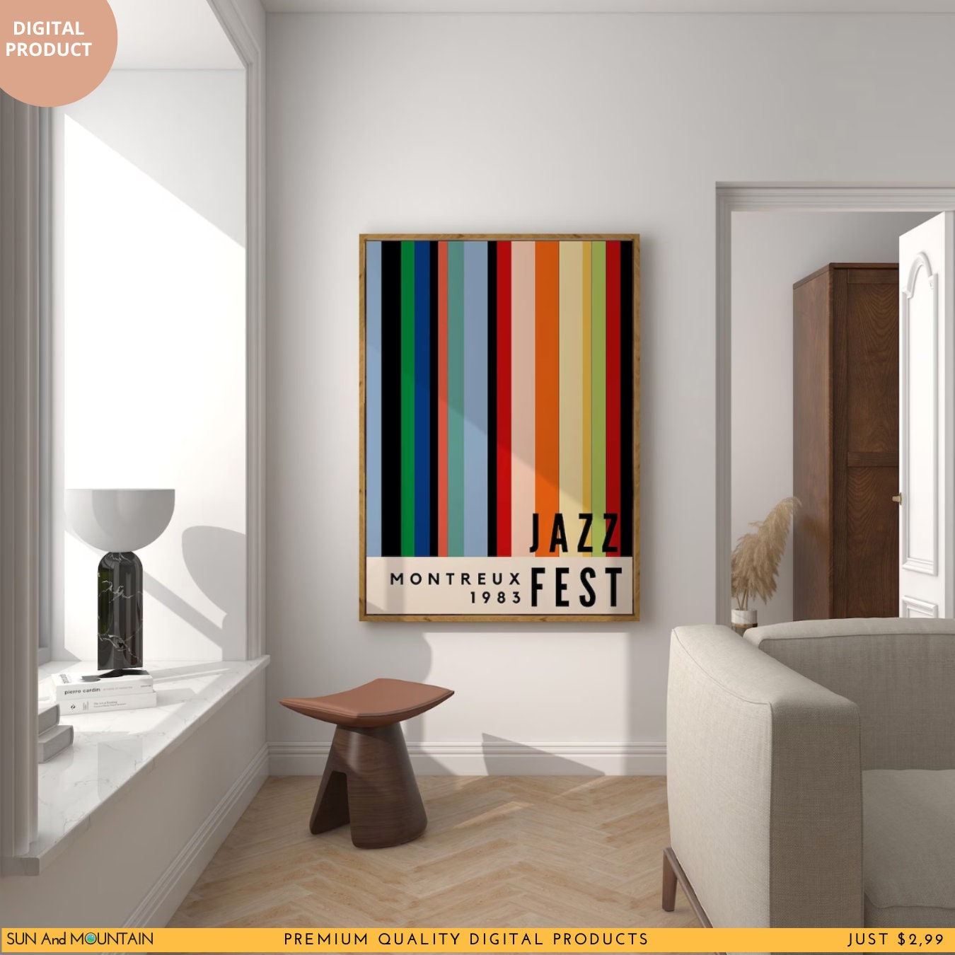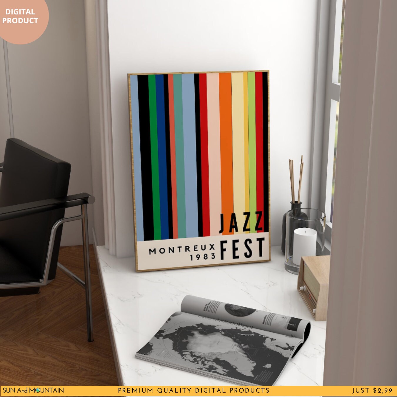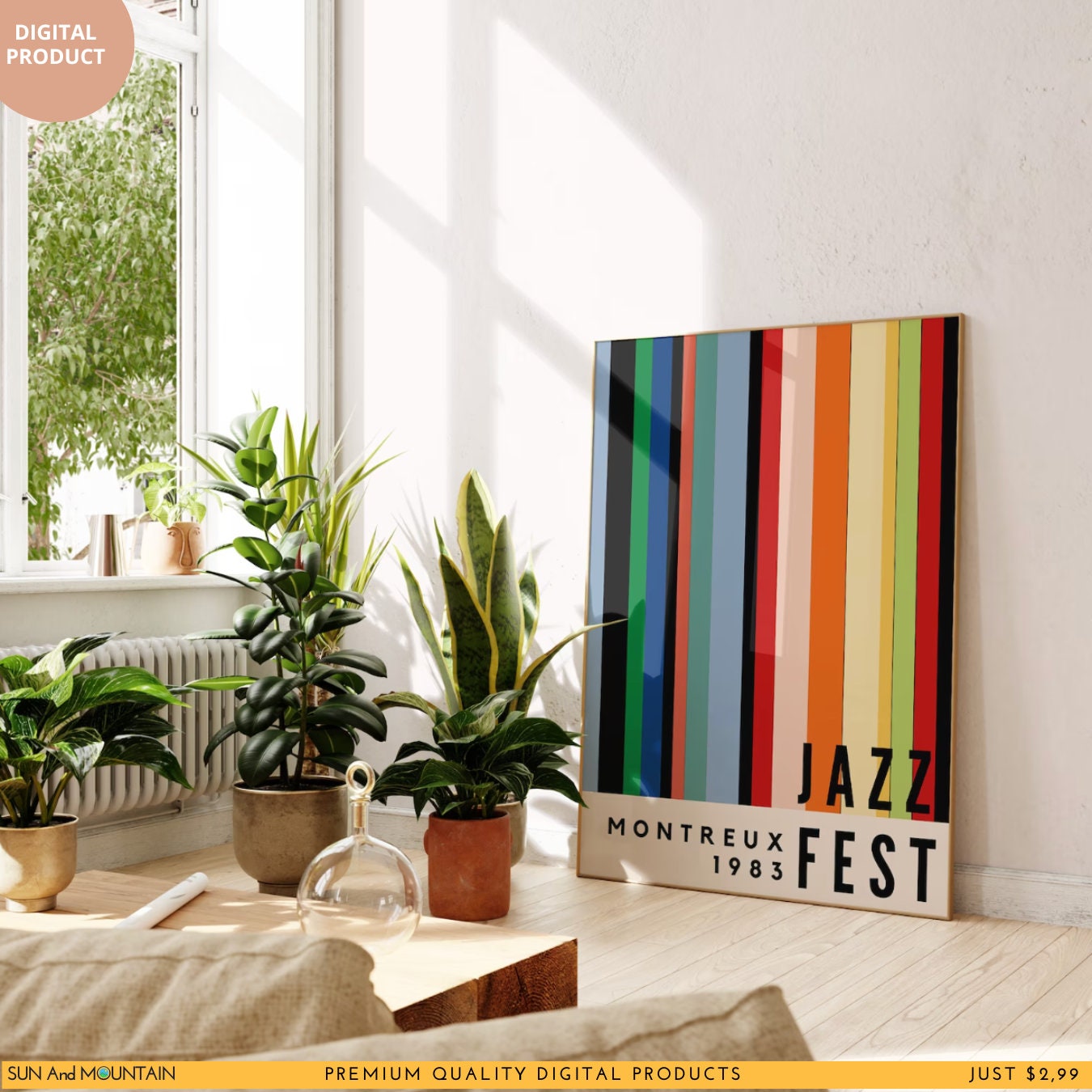 Jazz Festival Printable Wall Art, Retro Jazz Music Print, Mid Century Modern Print, Vintage Music Poster, Colorful Retro Home Decor