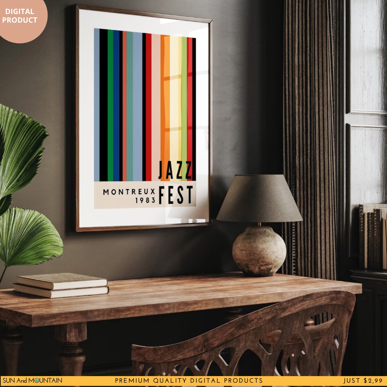Jazz Festival Art Print: Retro Mid Century Modern Home Decor (Digital Download)
