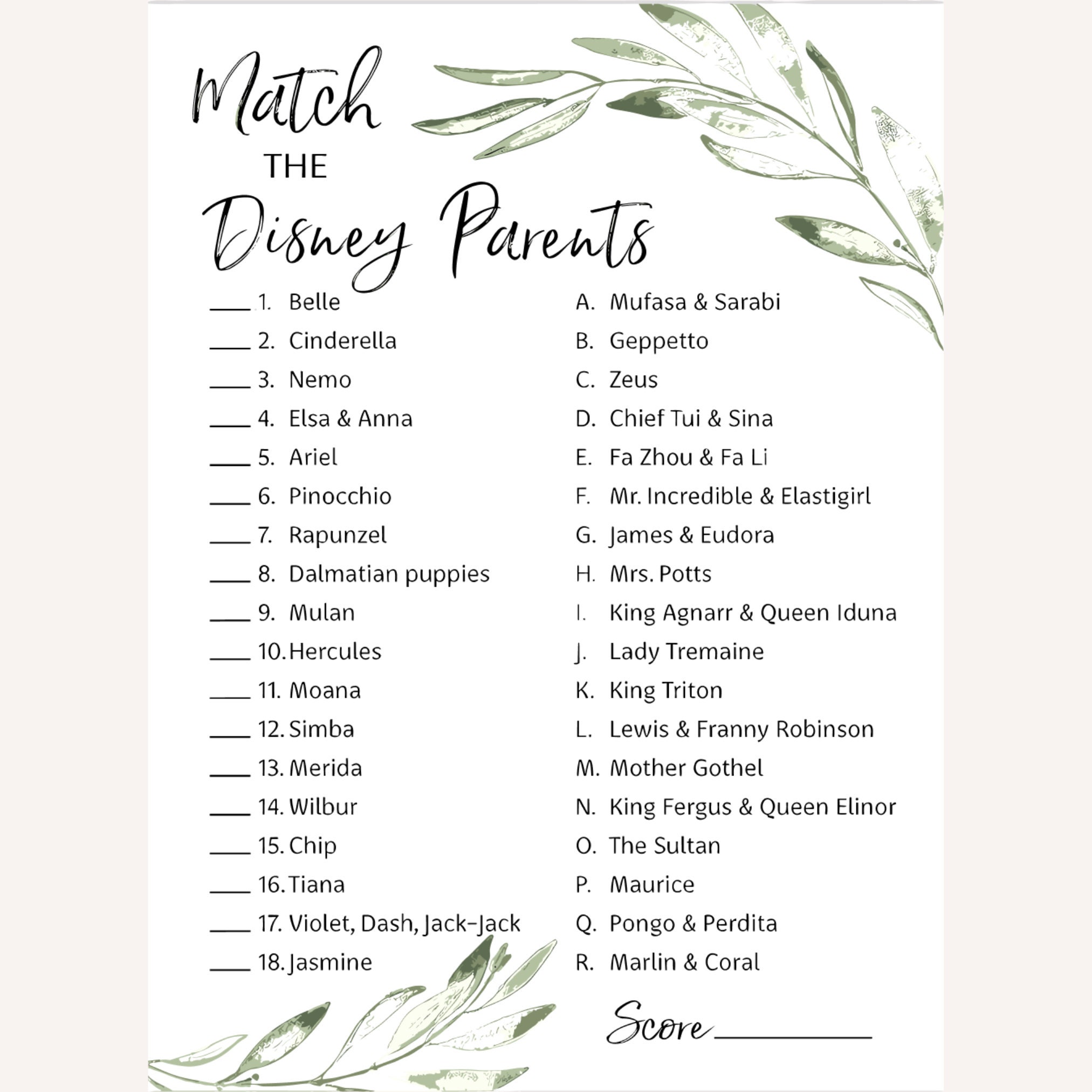 11- Match the Disney parents