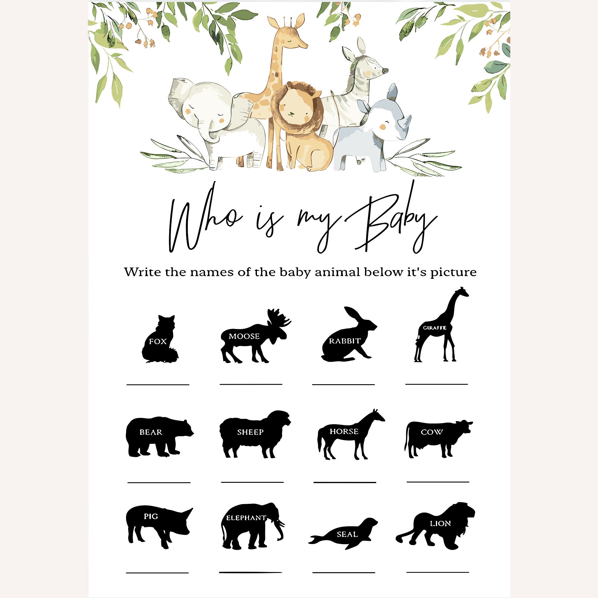 12 Baby Shower Game Bundle | Eucalyptus Baby Shower Game | Editable Template | Baby Shower Family Feud Game | Little Cutie Baby Shower Game