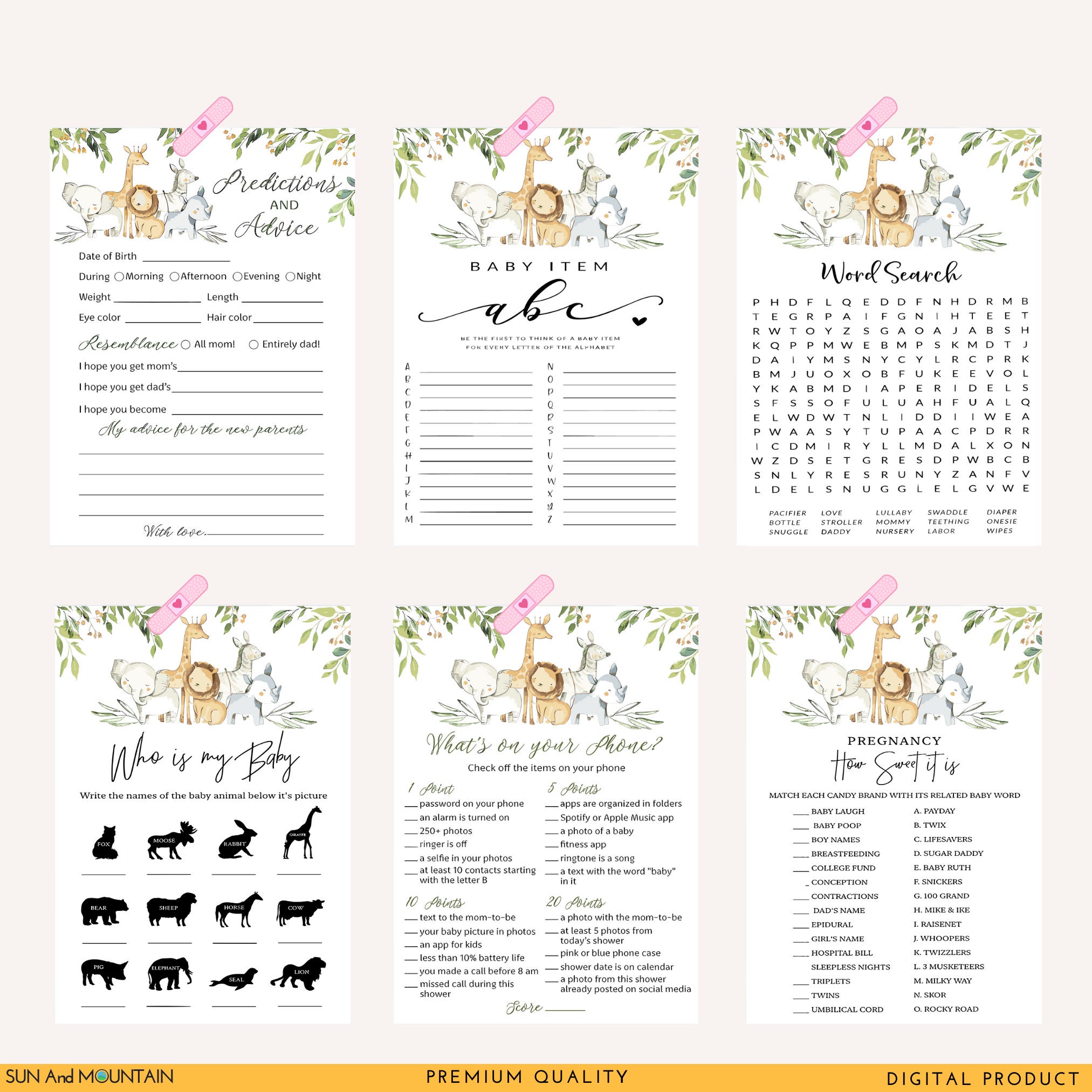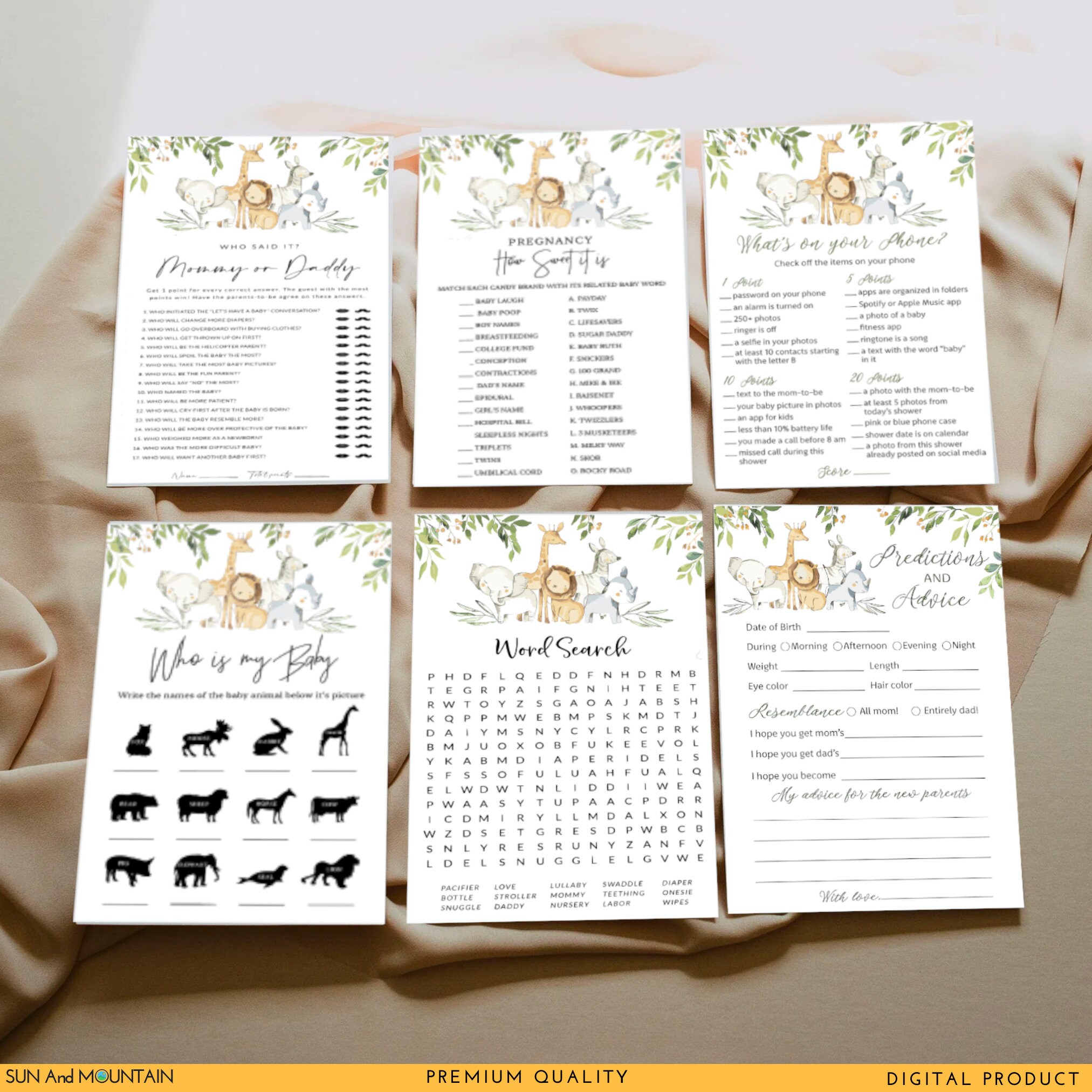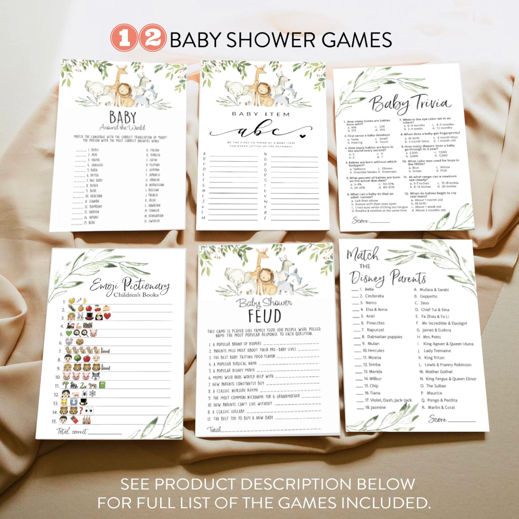 Eucalyptus Baby Shower Game Bundle: 12 Printable Games (Digital Download)