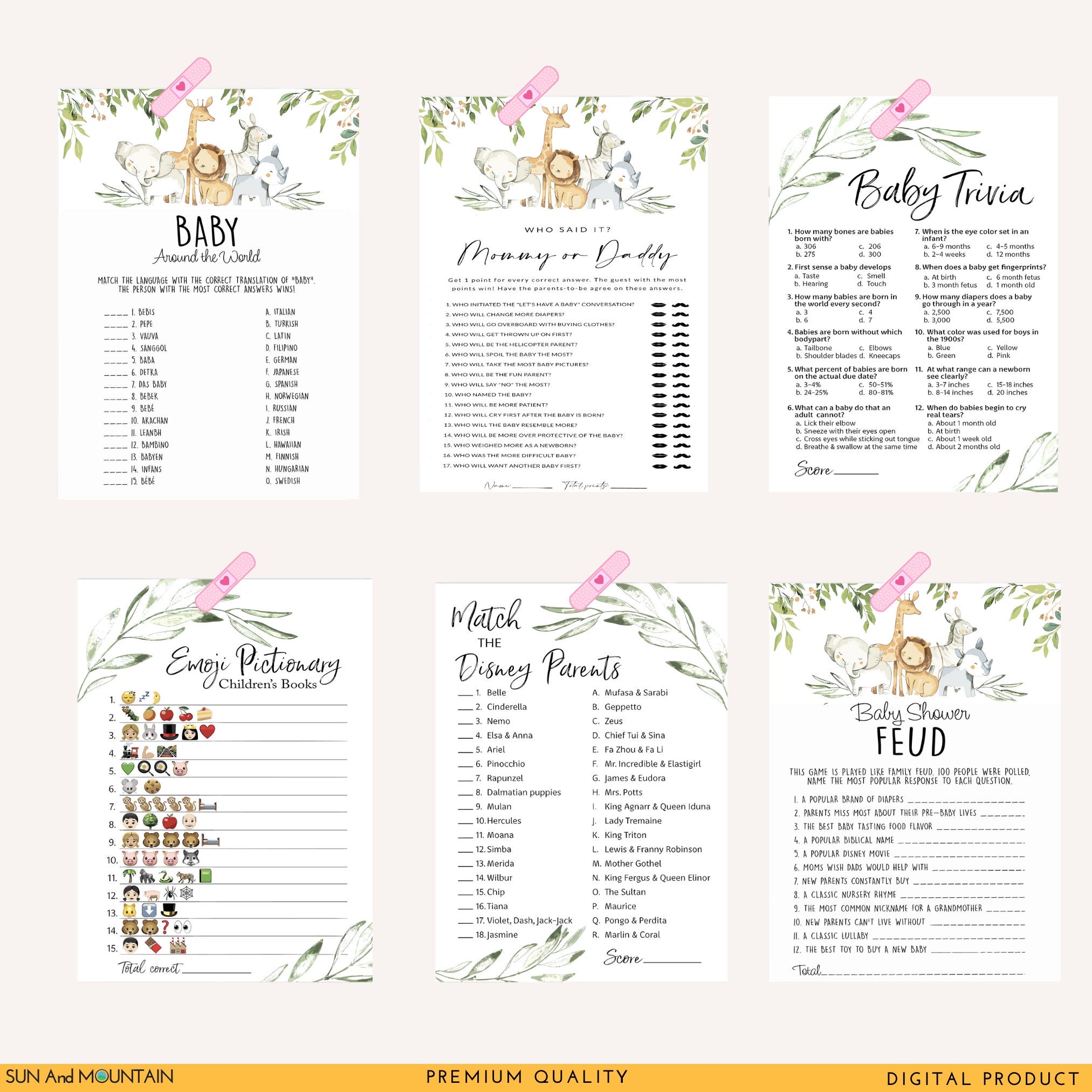 Baby Shower Bundle, Printable Baby Game, Baby Shower Cards, Gender Neutral, Baby Game Bundle, Baby Shower Activity, Baby Prediction Card, Baby Shower Trivia, Baby Trivia Game, Minimalist Shower, Greenery Baby Shower, Baby Family Feud, Modern Baby Shower