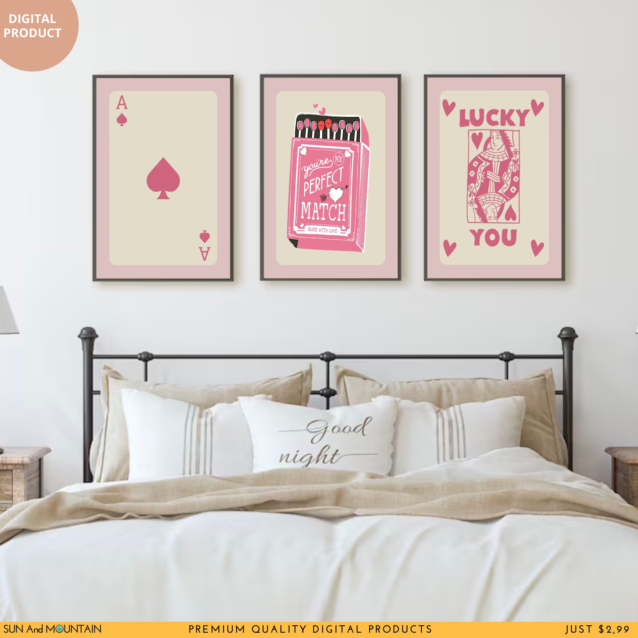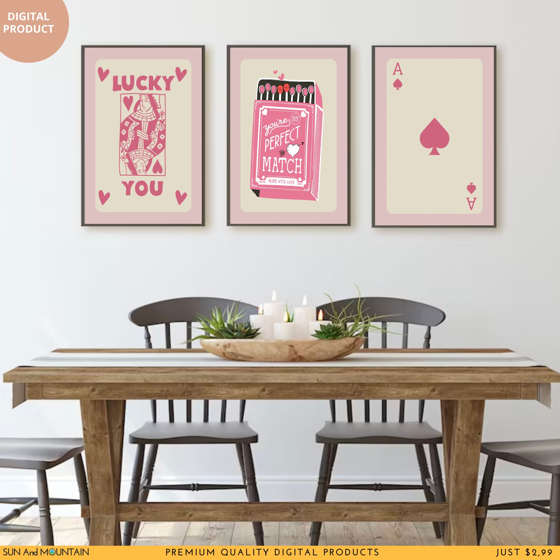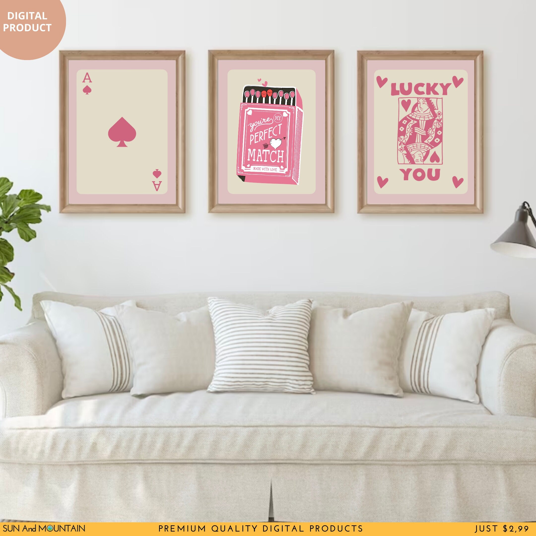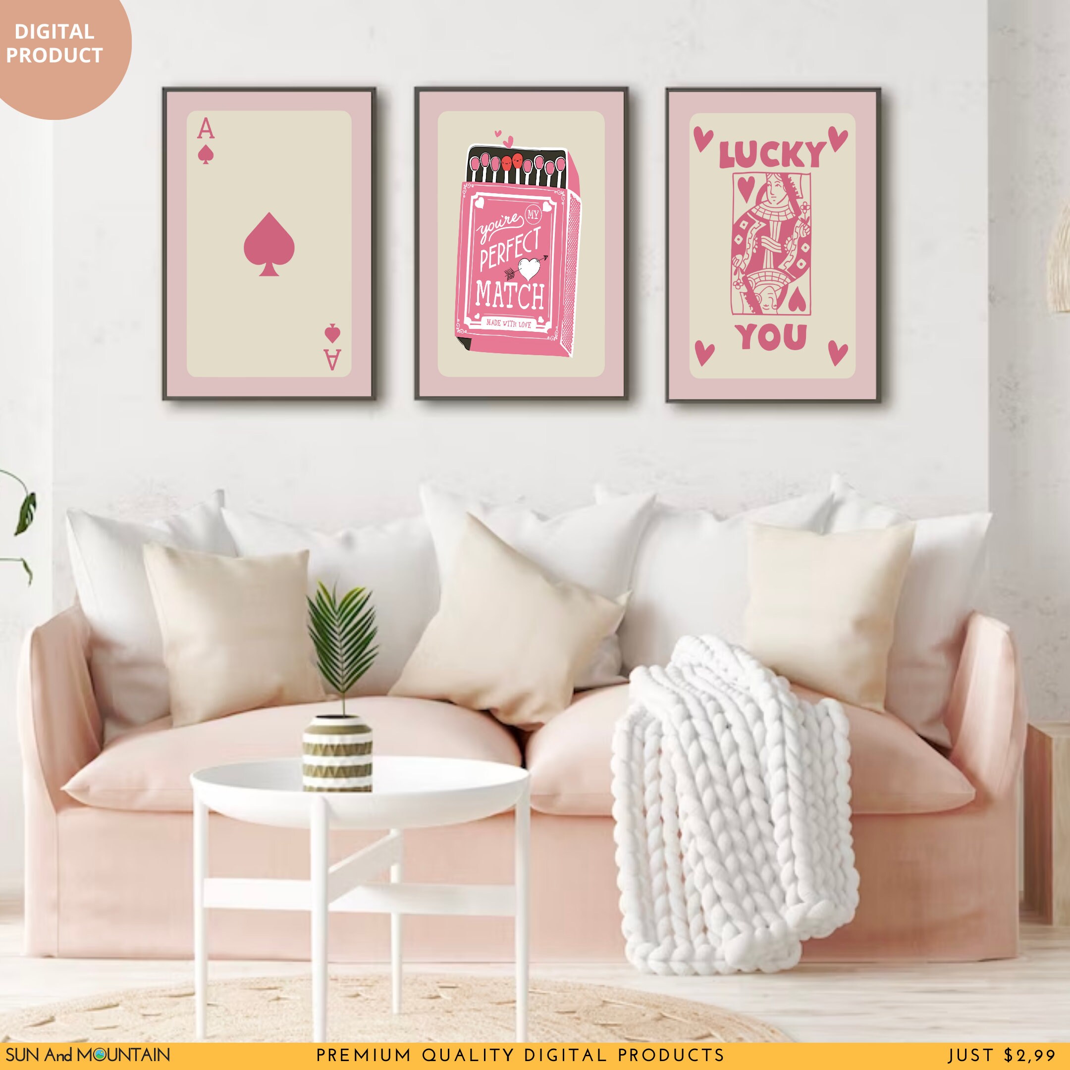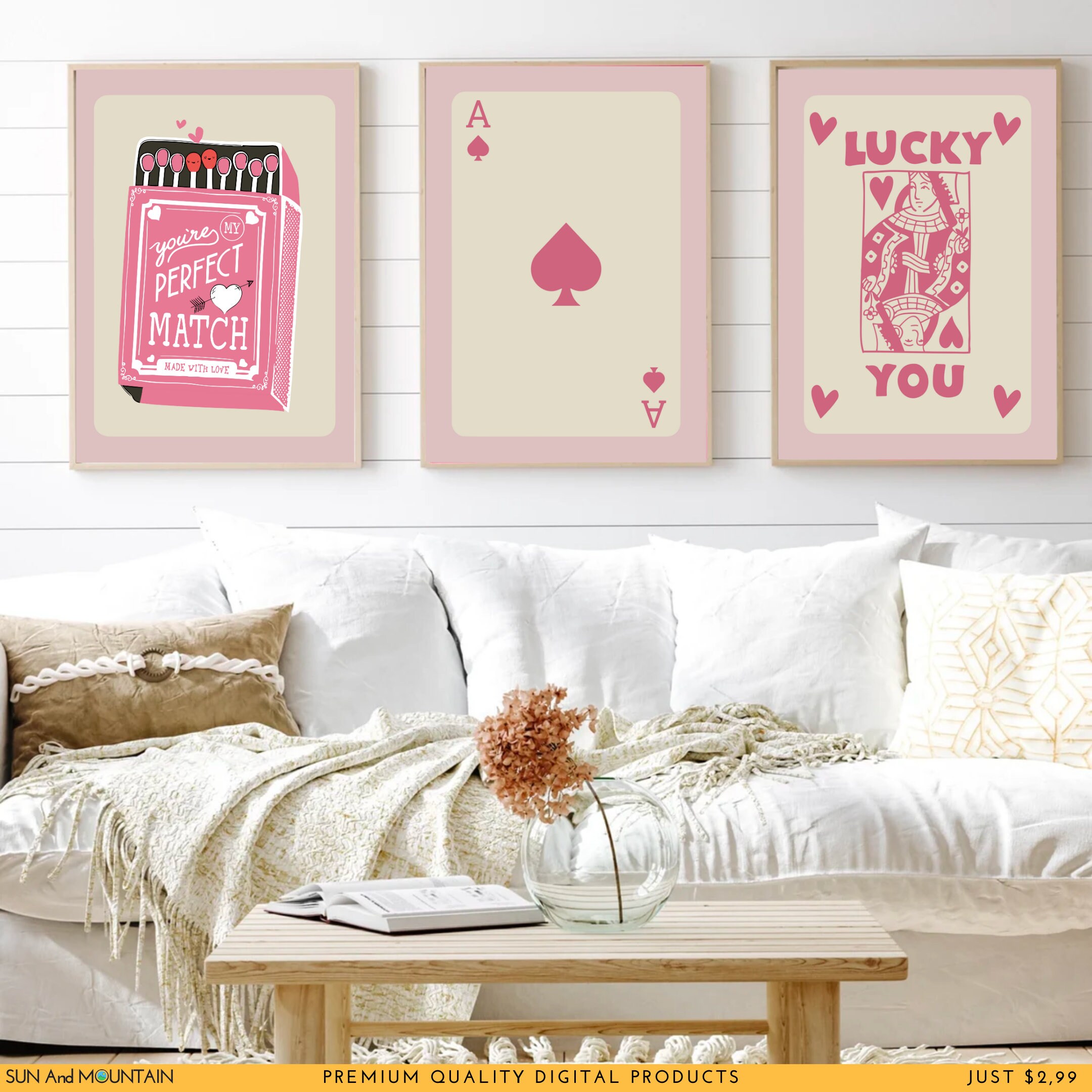 Retro Ace of Hearts Print Set: Pink Trendy Wall Art (Digital Download)