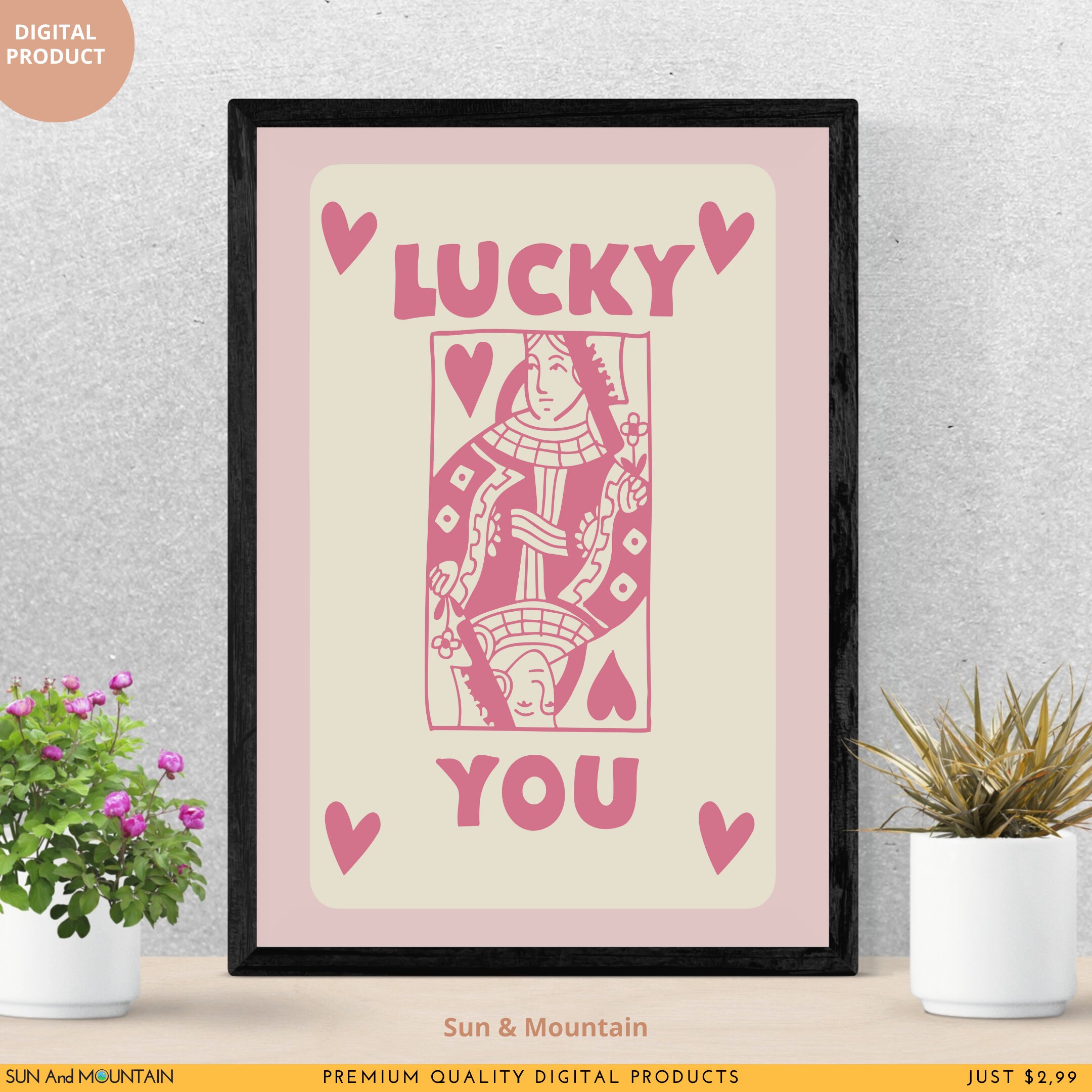 (5 Ace Card Print | 5 Queen Of Hearts Wall Art | 5 Lucky You)
