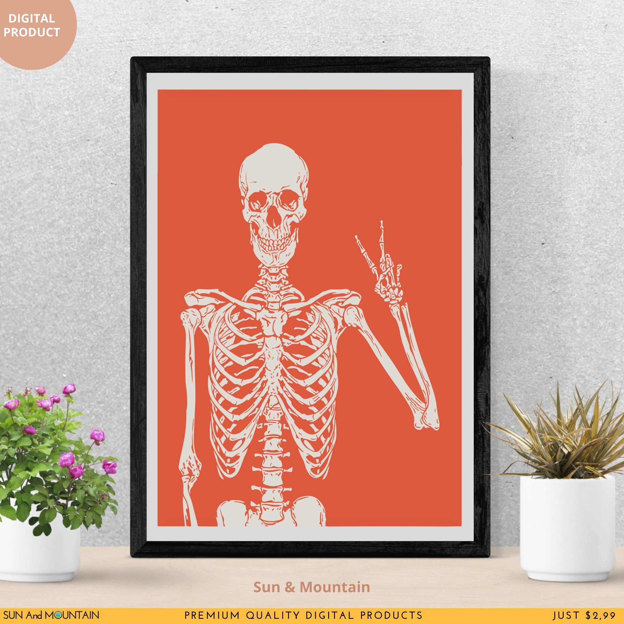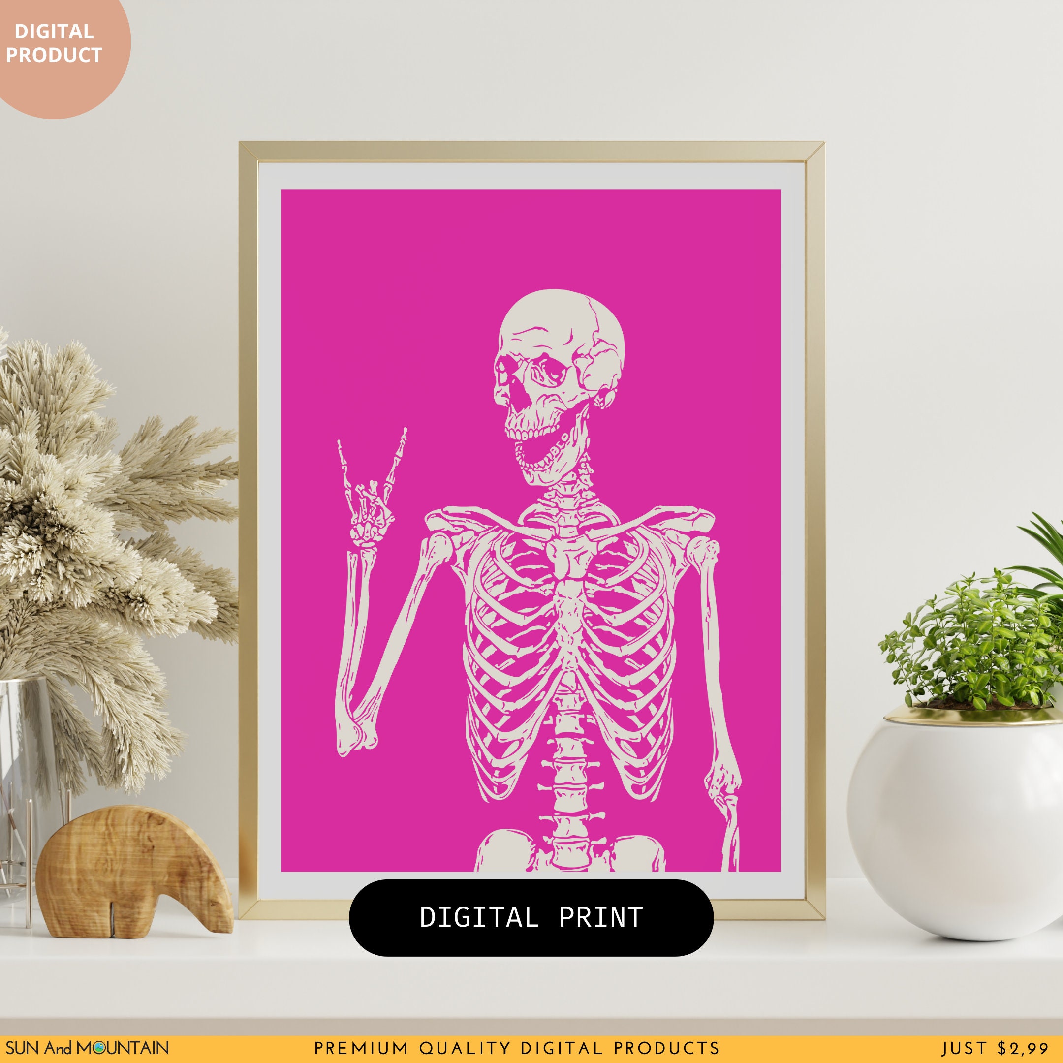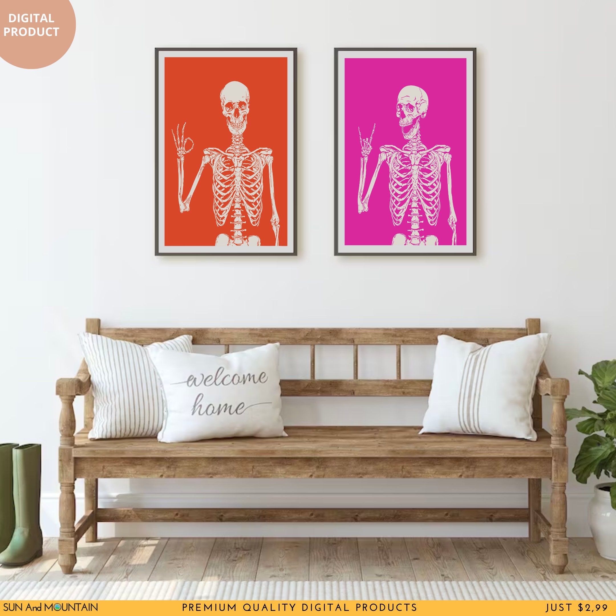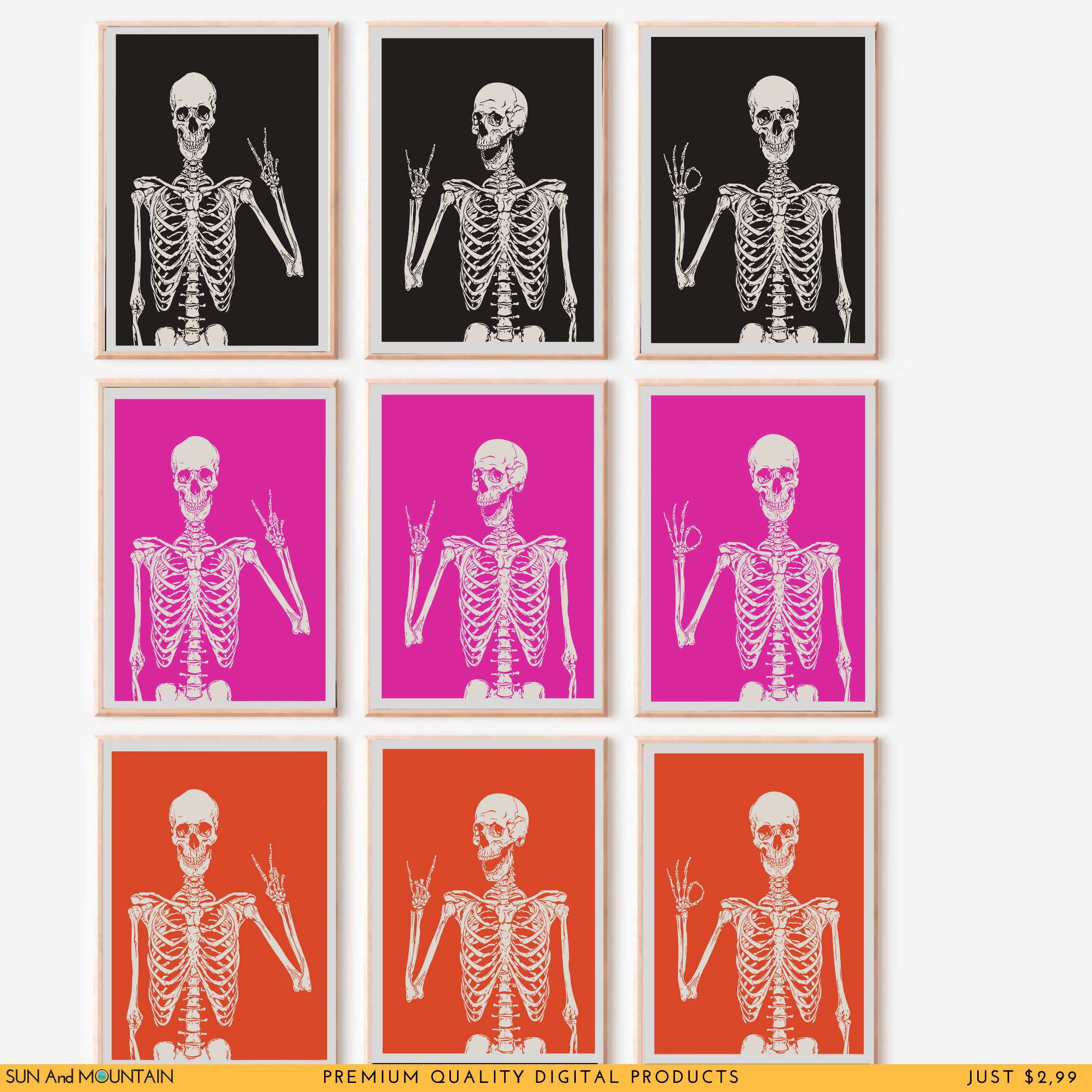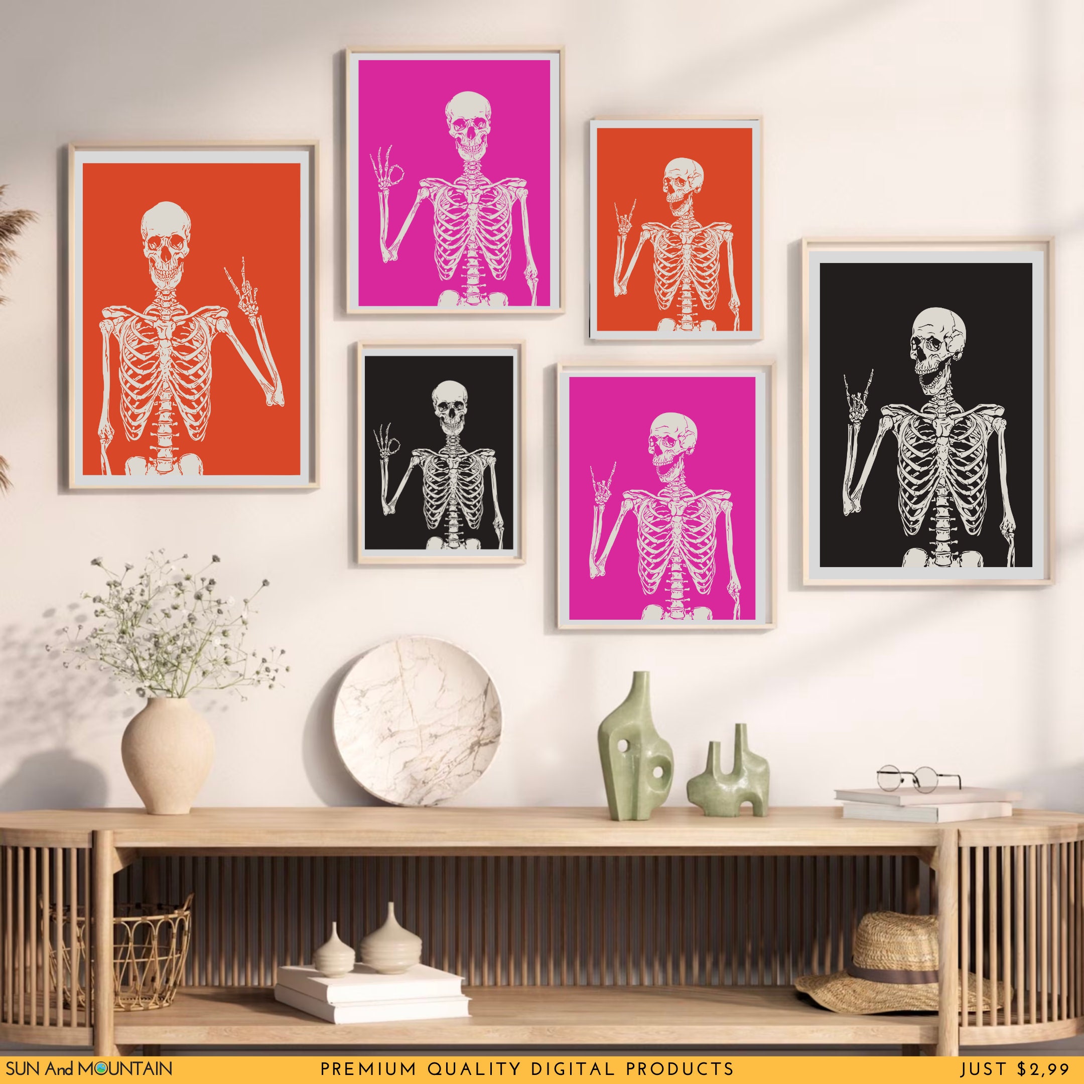 Skull Print Set: Gothic Emo Decor, Pink Orange Black (Digital Download)
