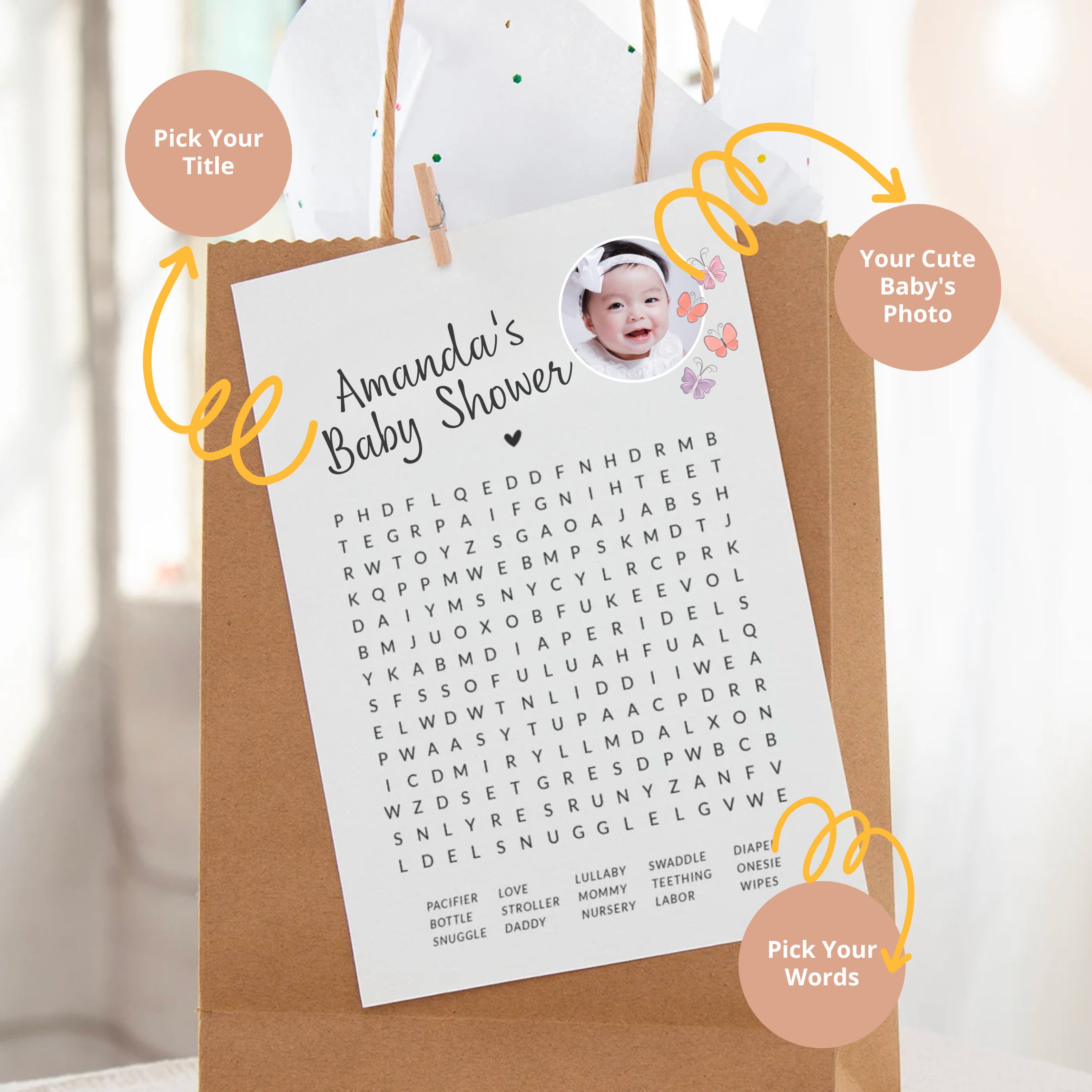Personalized custom Baby Shower Word Search - Printable Baby Shower Game - Baby Word Search - Baby Shower Activity