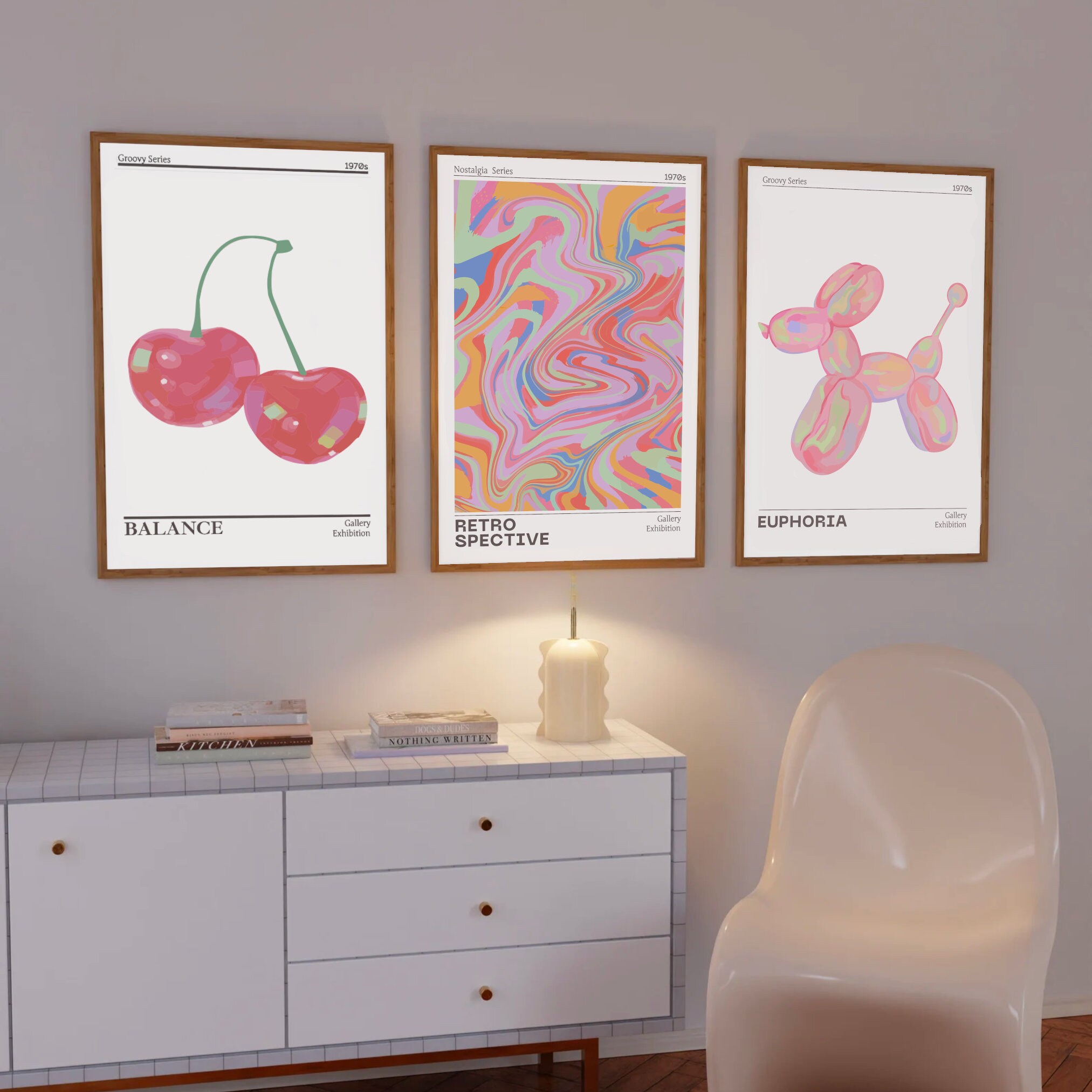 Euphoria Wall Art Set Of 3 Prints. Retro Spective. Aura Poster. Retro Gradient Poster. Grainy Gradient. Affirmation Poster.Psychedelic Home Decor.