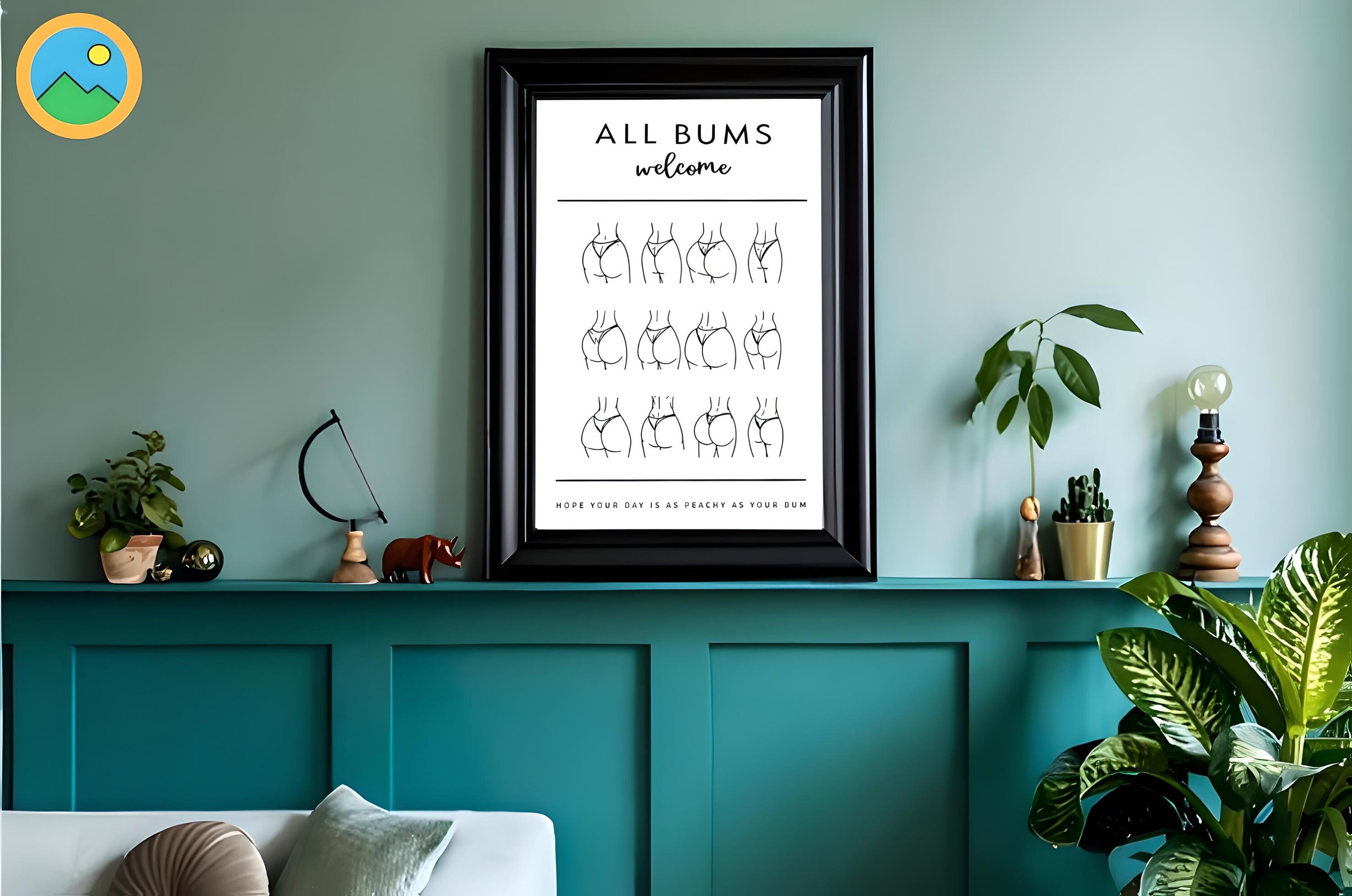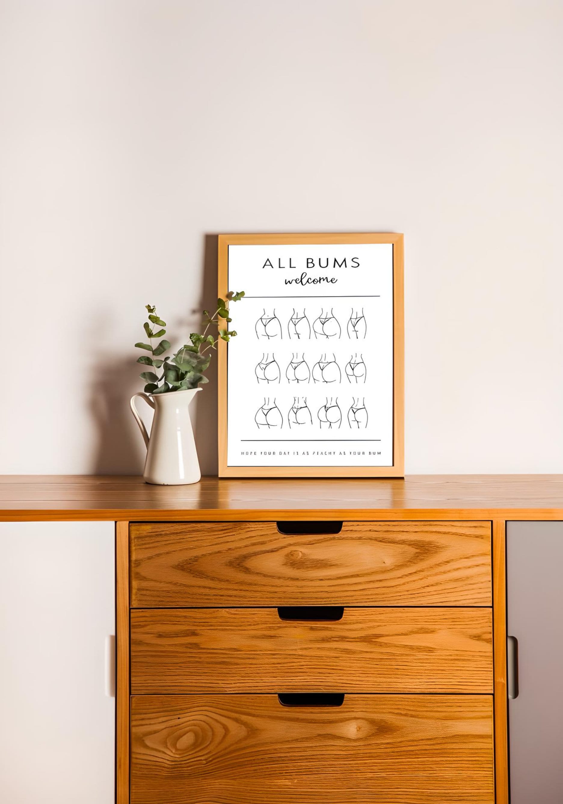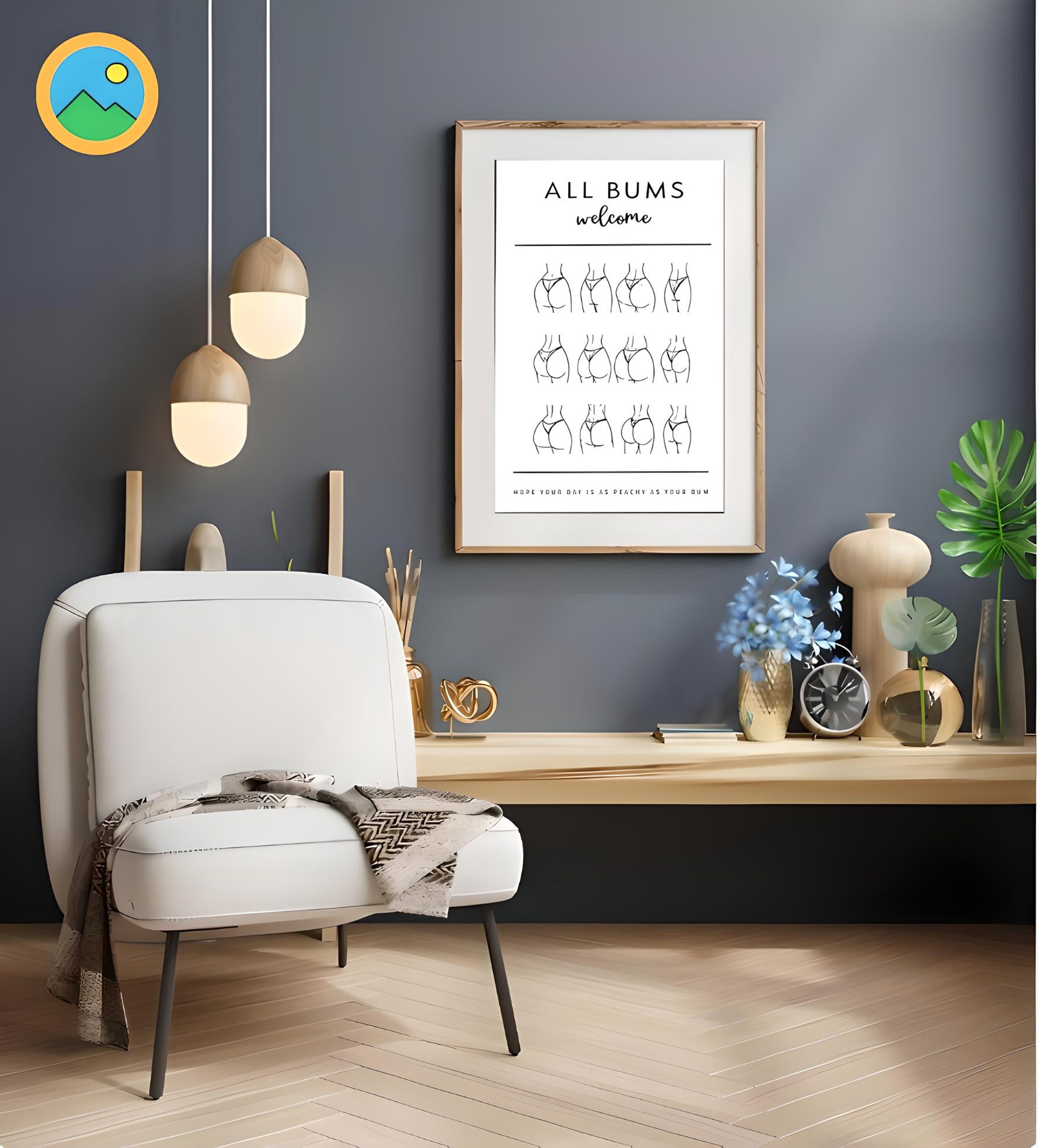 Funny Bathroom Art, All Bums Welcome, Cute Bathroom Butts, Bum Collage, Funny Bathroom Sign, Bathroom Wall Decor, Body Positive, Printable