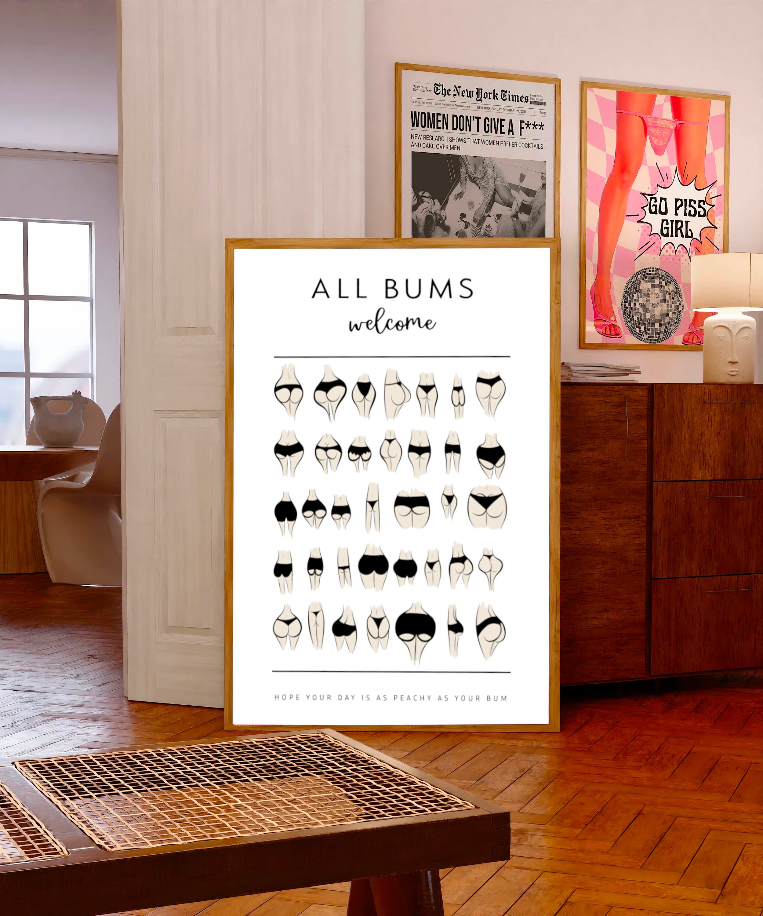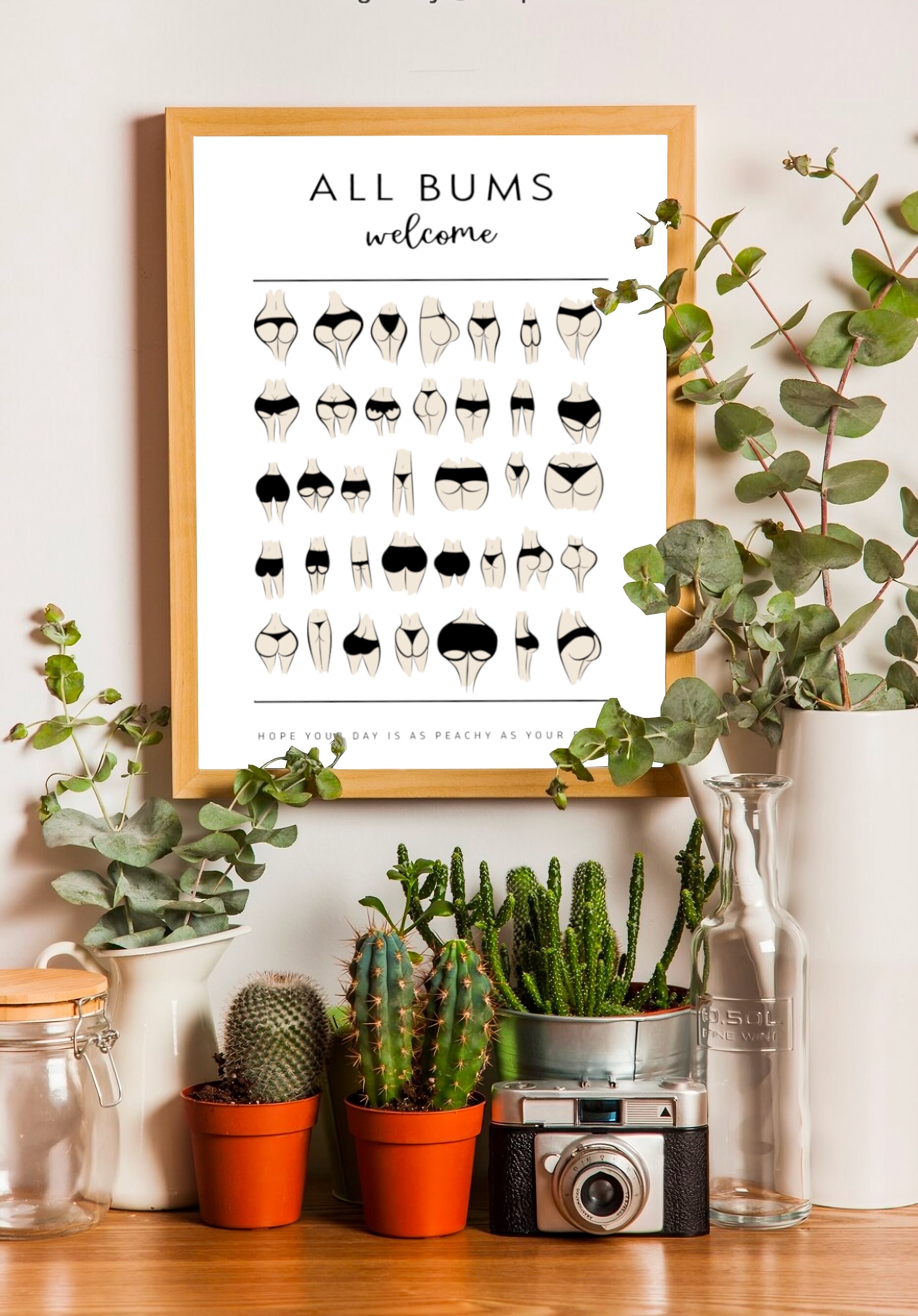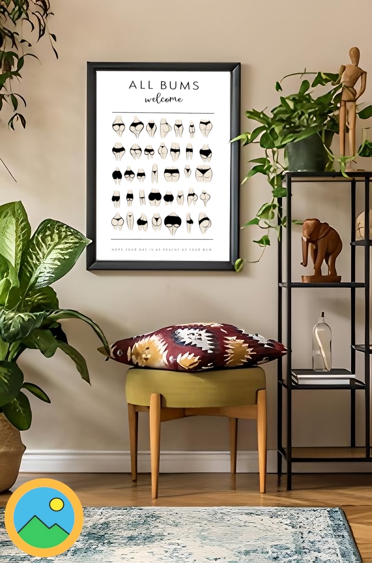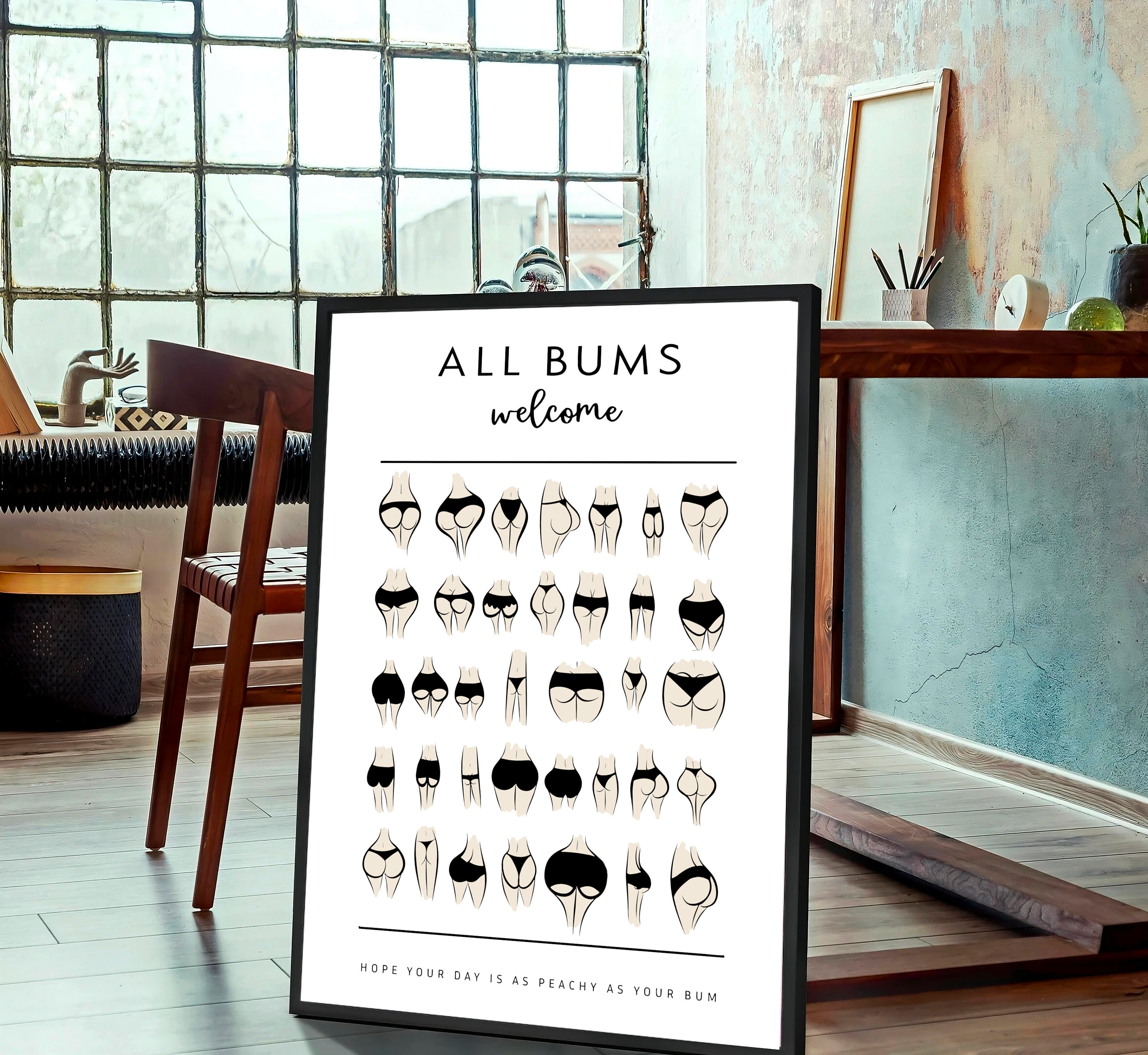 All Bums Are Welcome.Nice bum. Bathroom wall art. Bathroom print. Bathroom art. All butt welcome. Nice butt. Bathroom sign.Poster for toilet