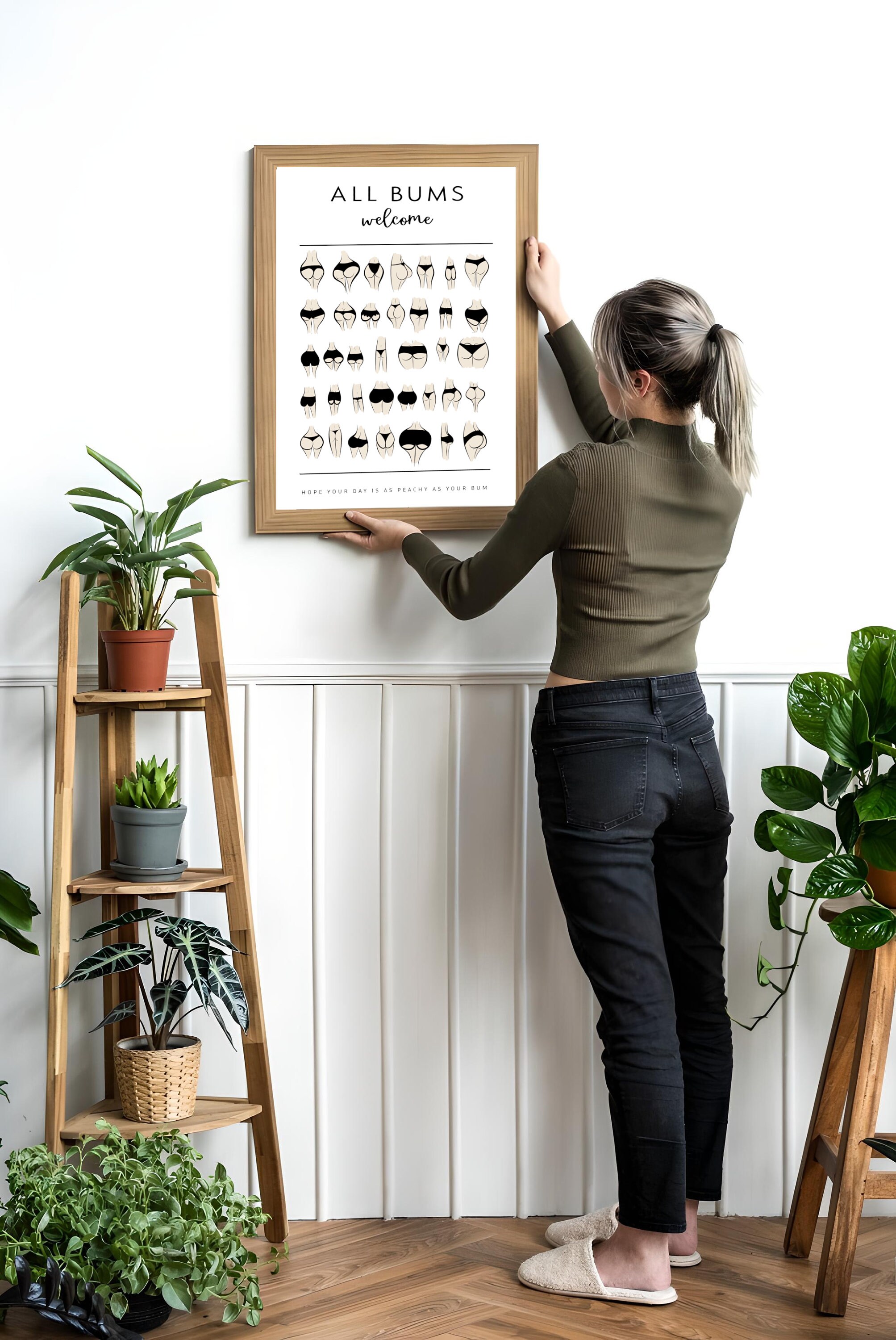 Funny Bathroom Art, All Bums Welcome, Cute Bathroom Butts, Bum Collage, Funny Bathroom Sign, Bathroom Wall Decor, Body Positive, Printable
