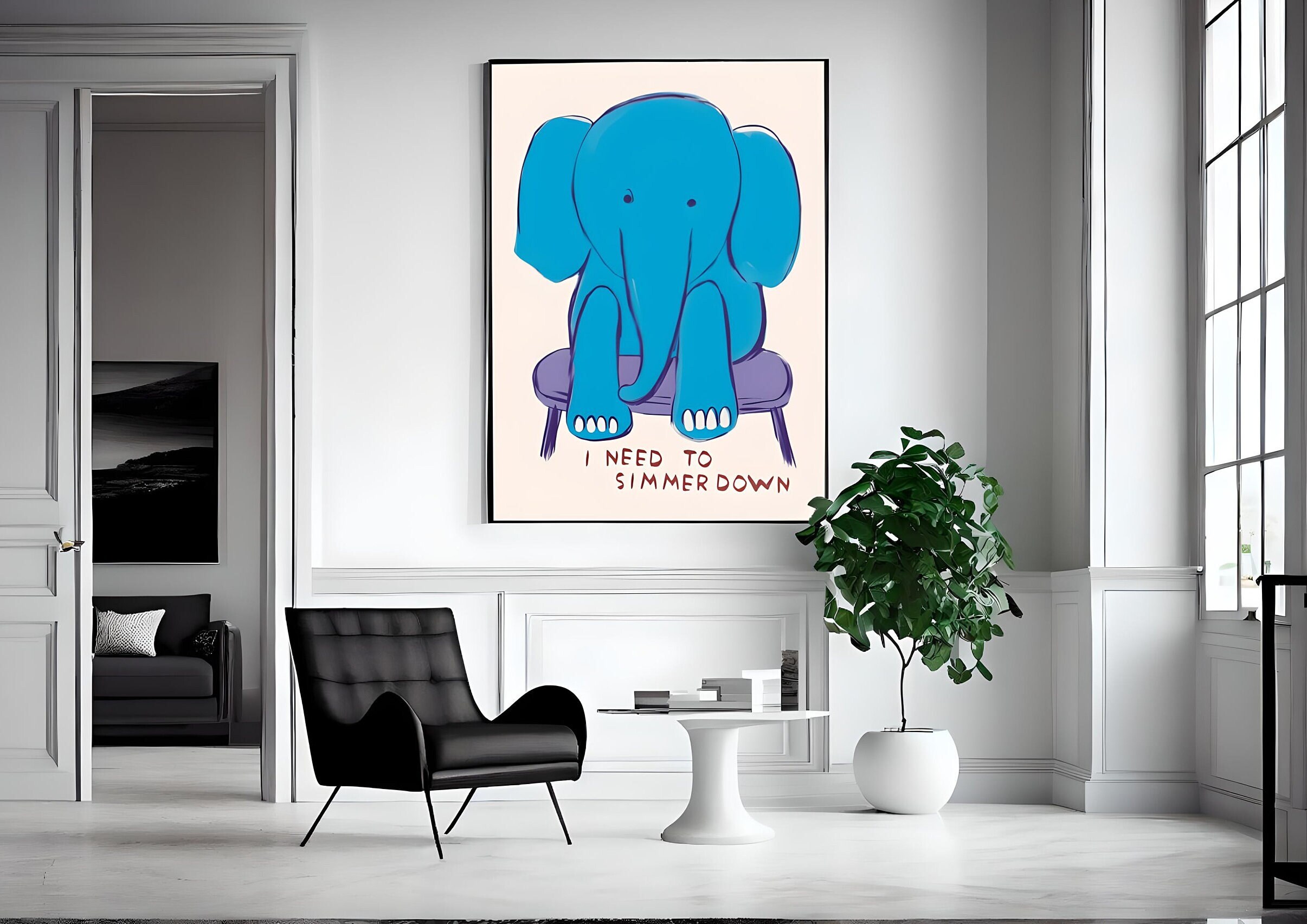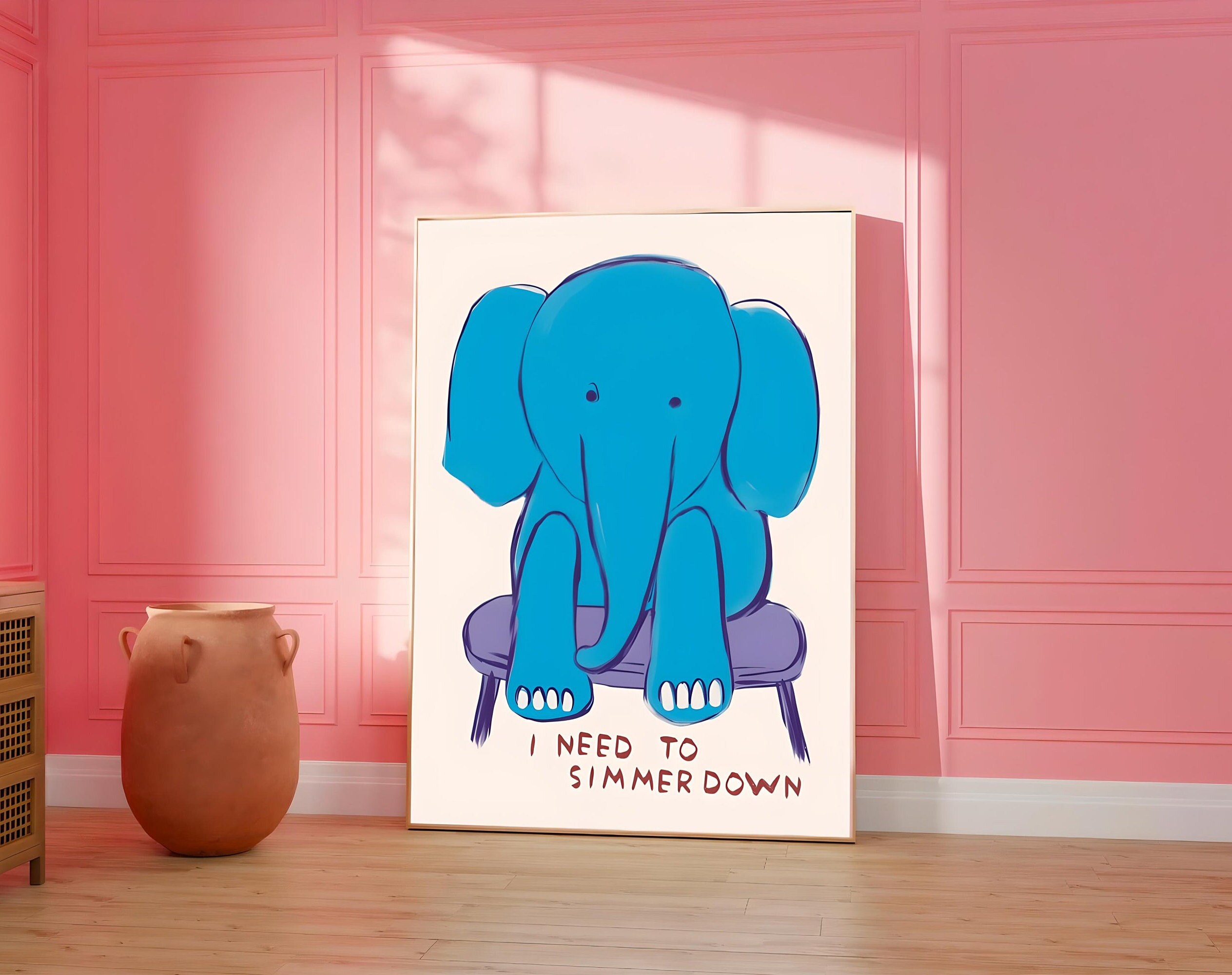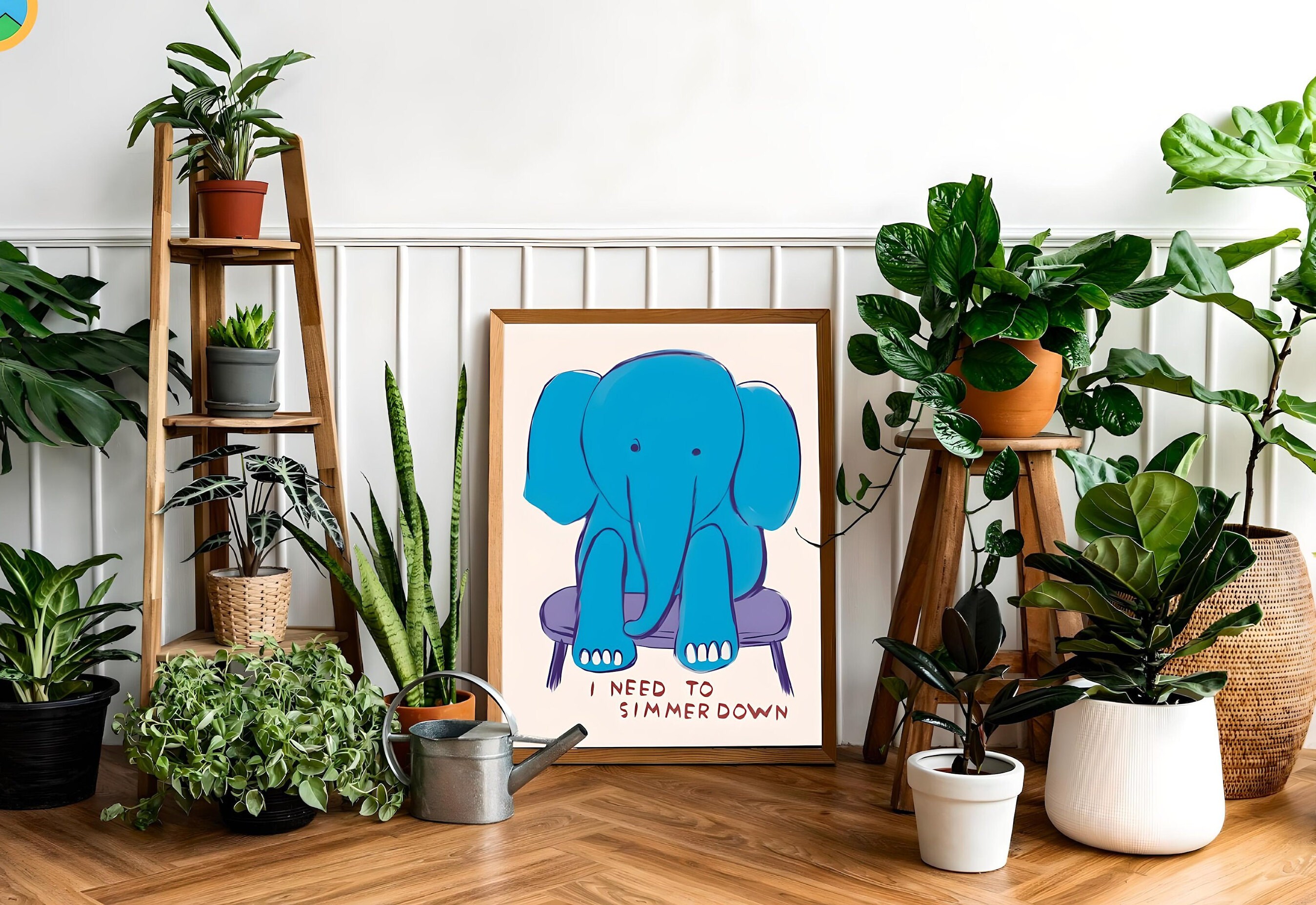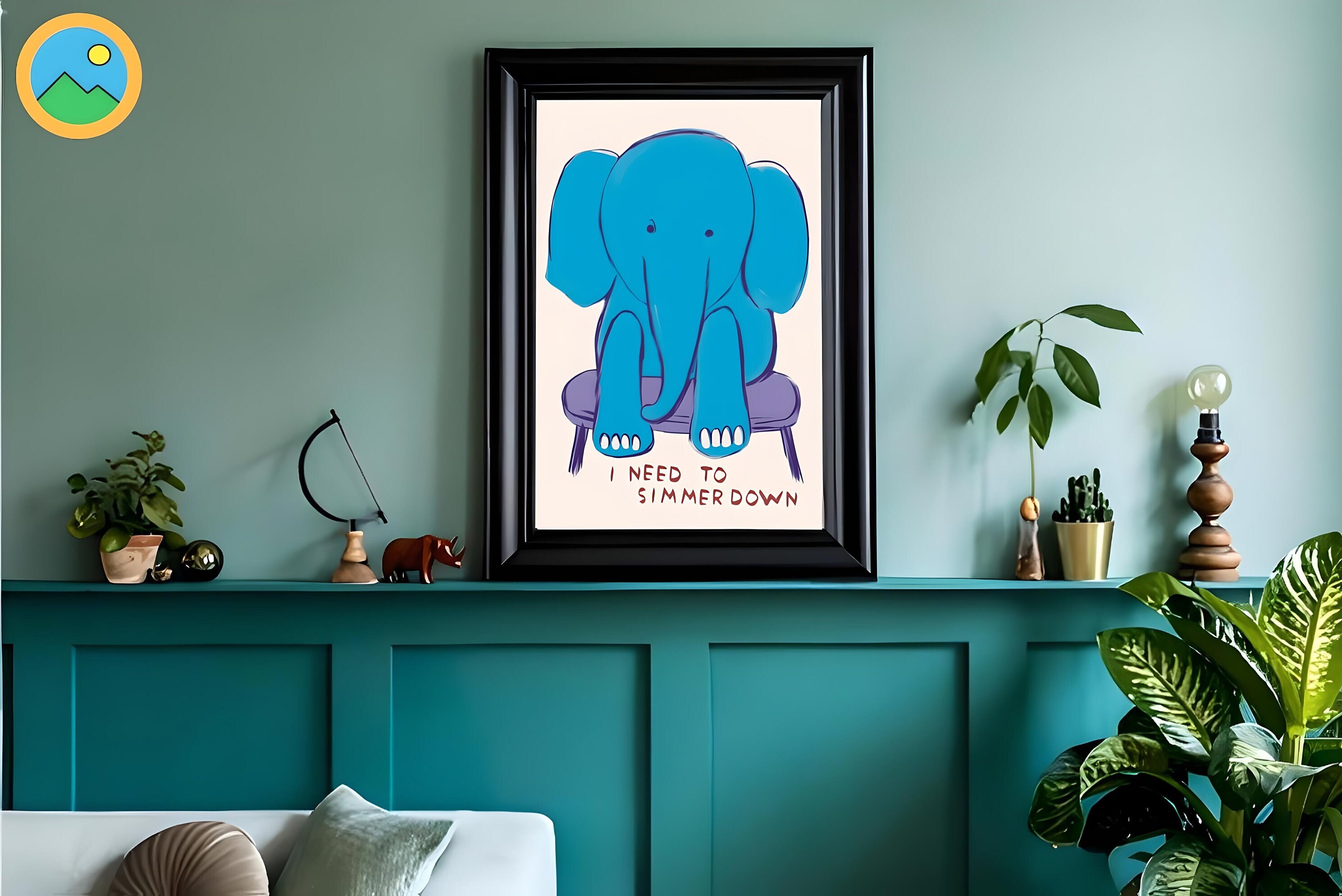 Blue Elephant Art Print: Funky Animal Wall Decor (Digital Download)