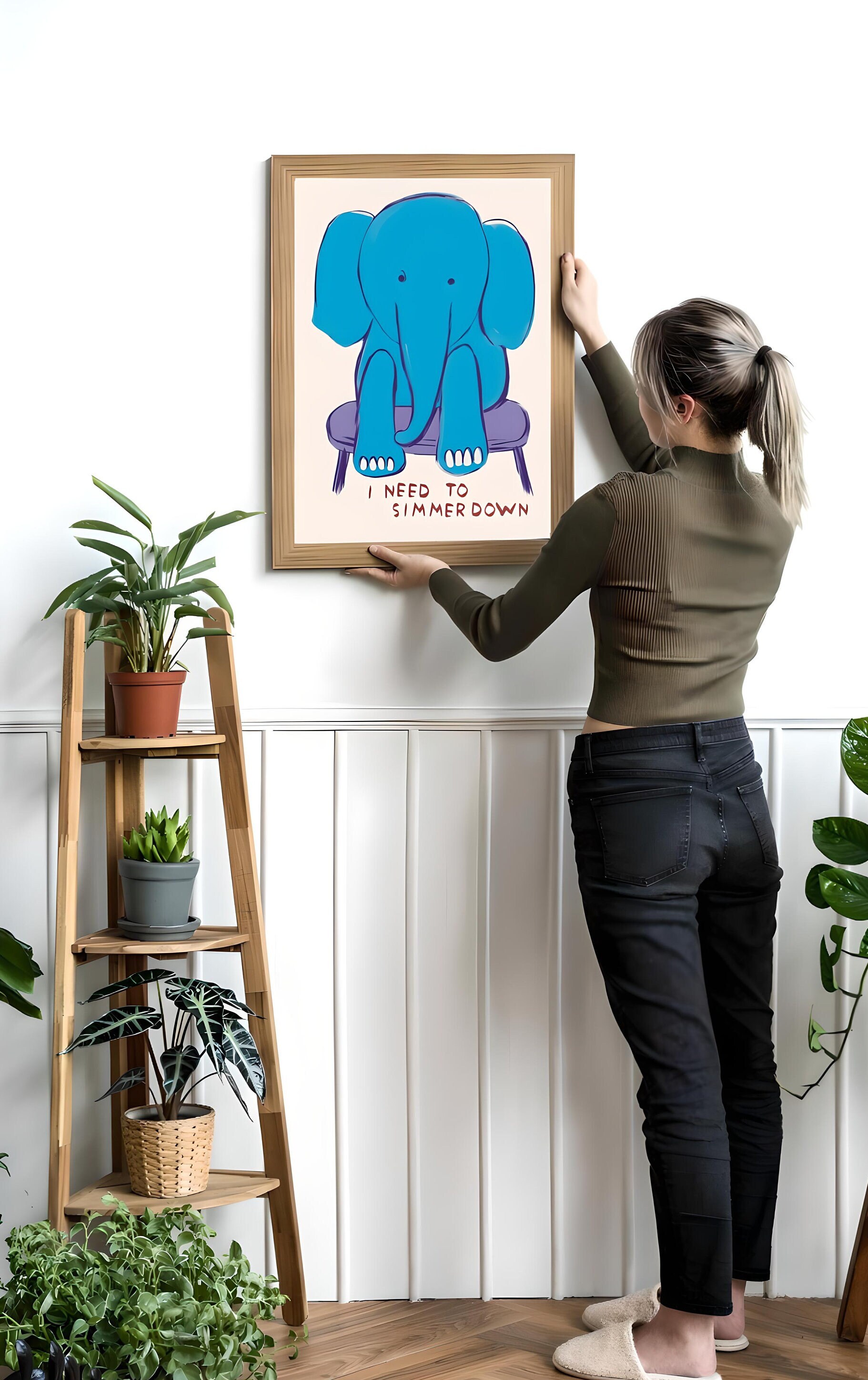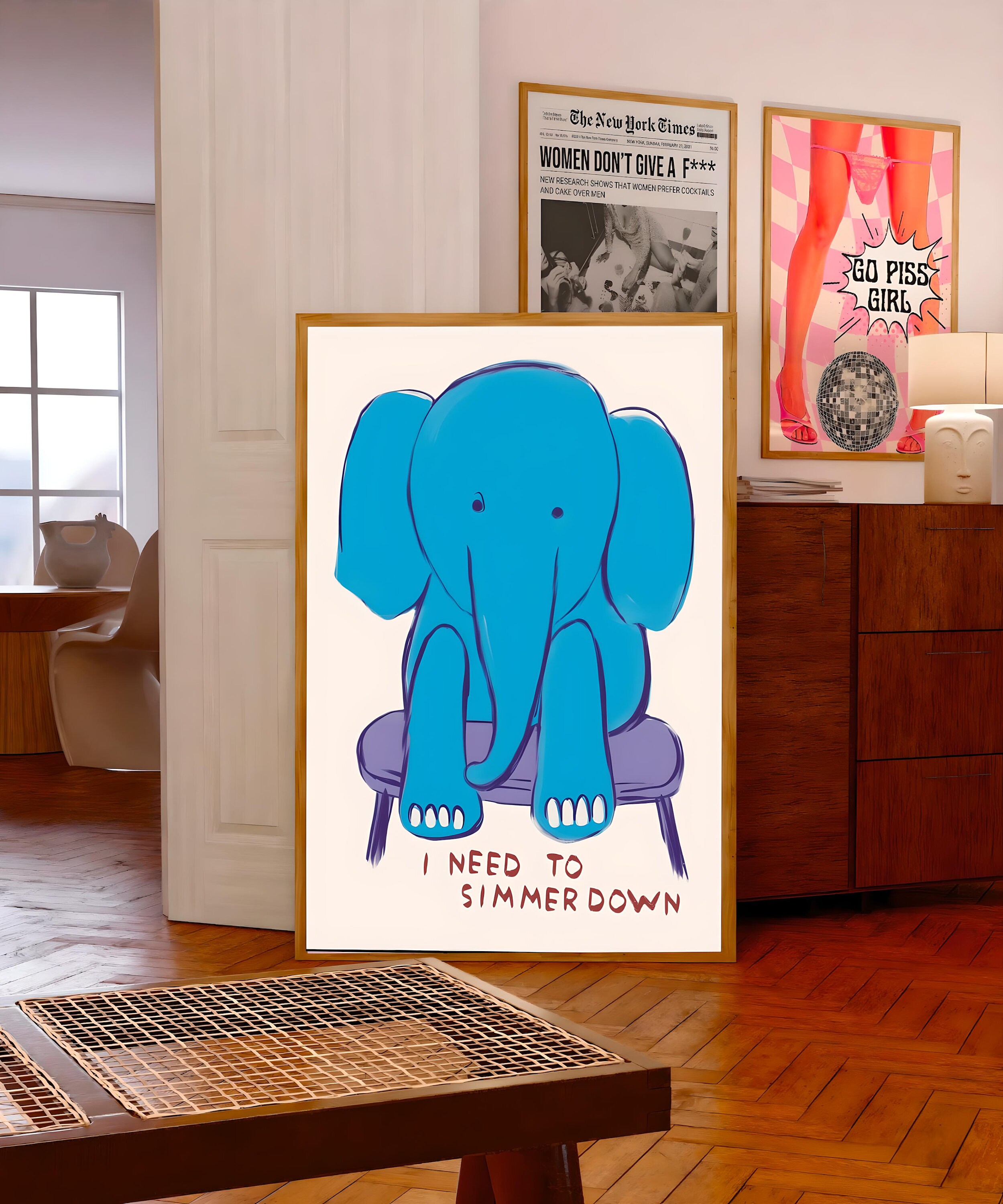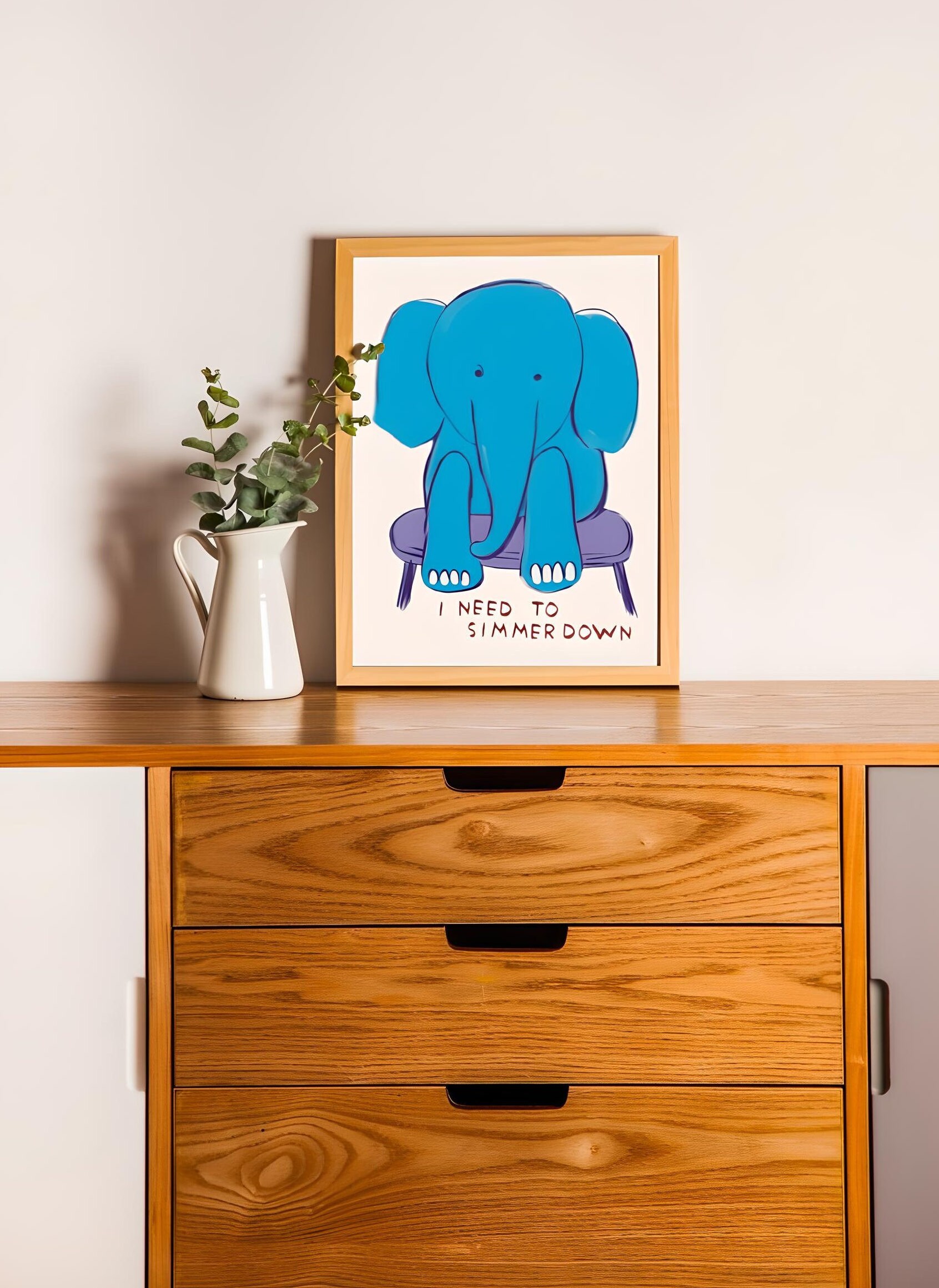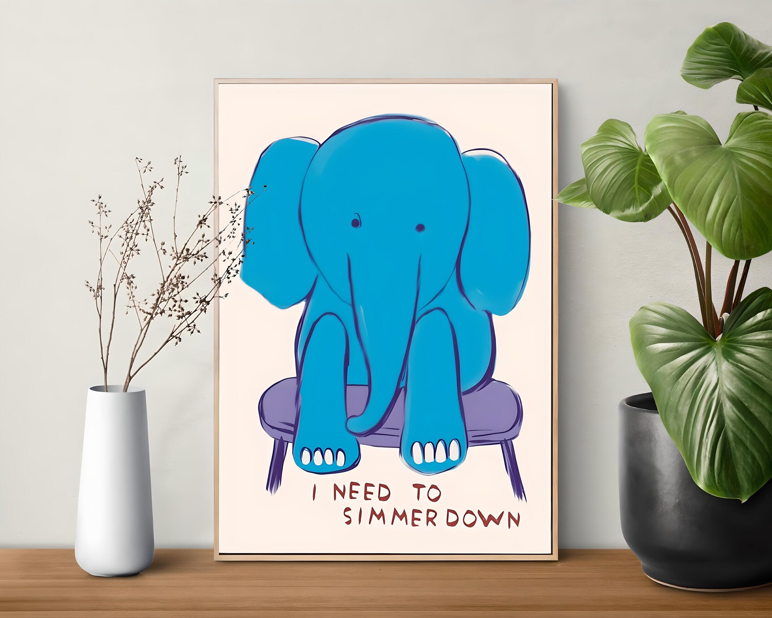 Blue Elephant Art Print: Funky Animal Wall Decor (Digital Download)