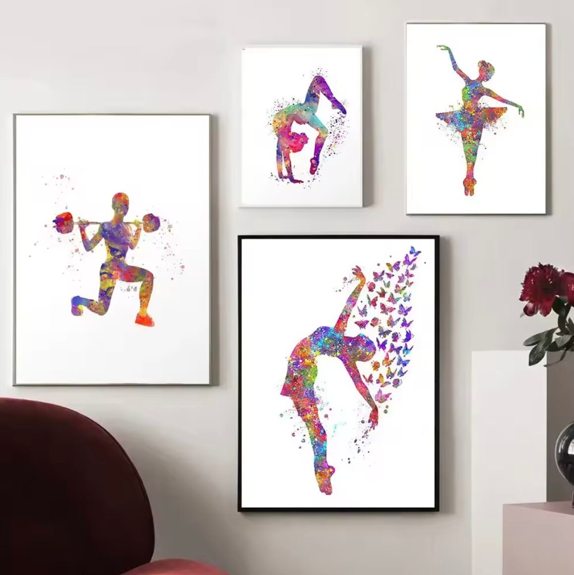 Elevate your space with the grace and power of movement! This collection of 20 vibrant watercolor prints celebrates the beauty and strength of gymnasts and dancers. Perfect for fitness studios, bedrooms, or any space that needs a burst of colorful inspiration.