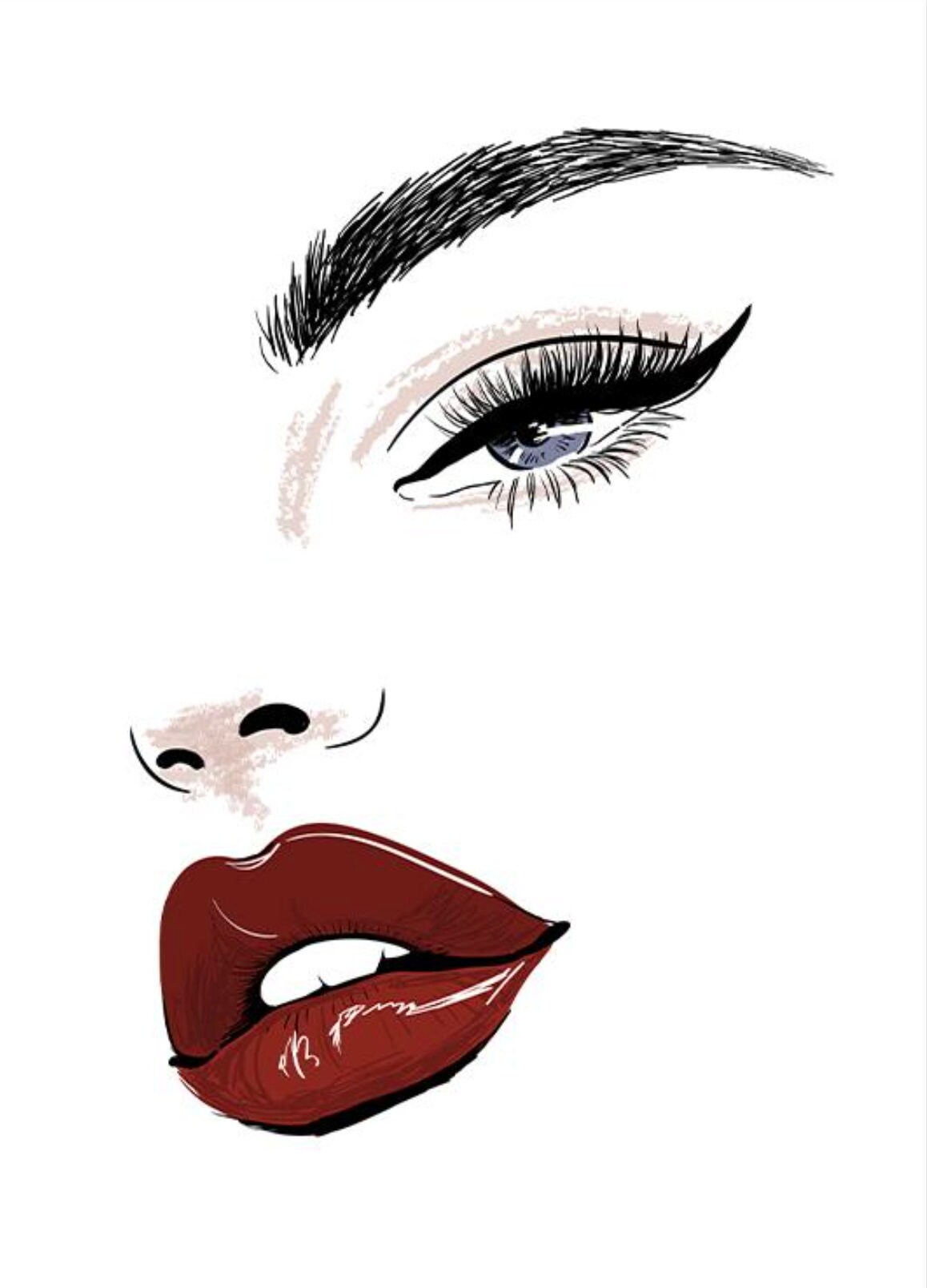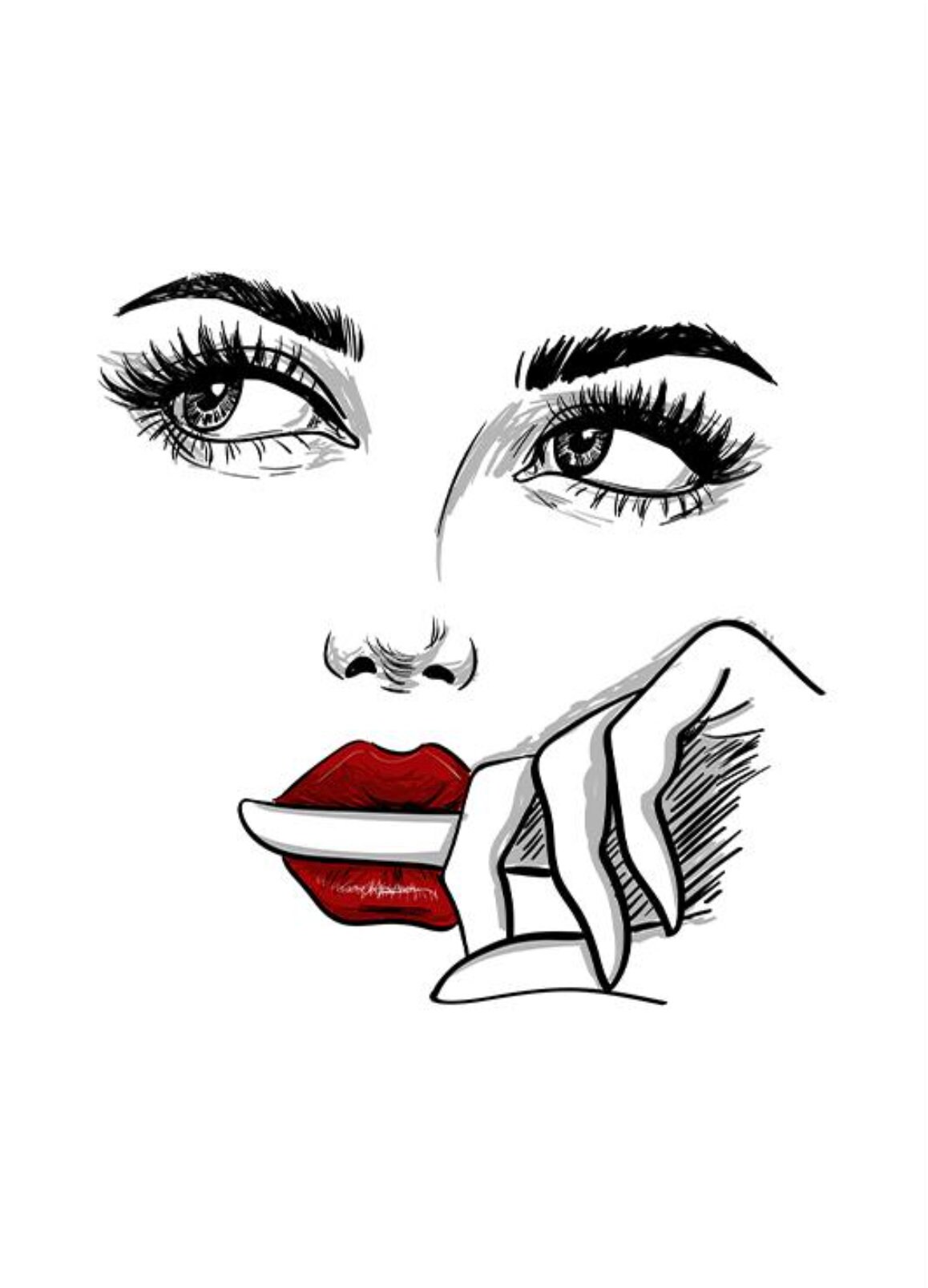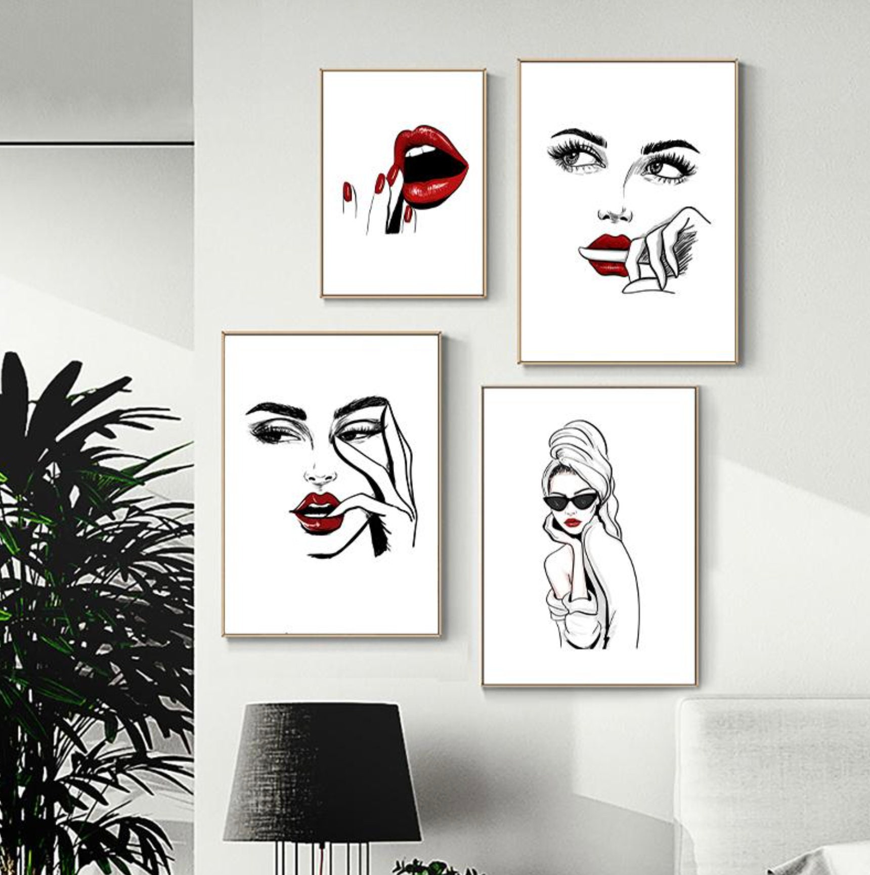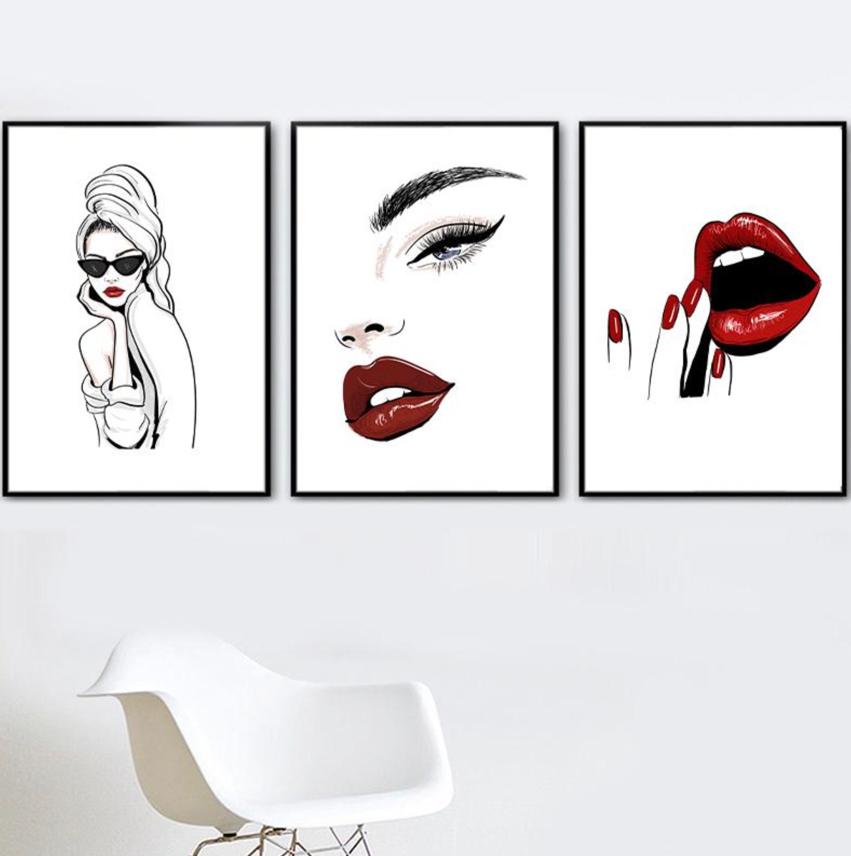 line art, fashion illustration, minimalist art, female figure, woman art, red lips, nail art, wall art prints, digital download, printable art, home decor, modern art, trendy decor, fashion gift